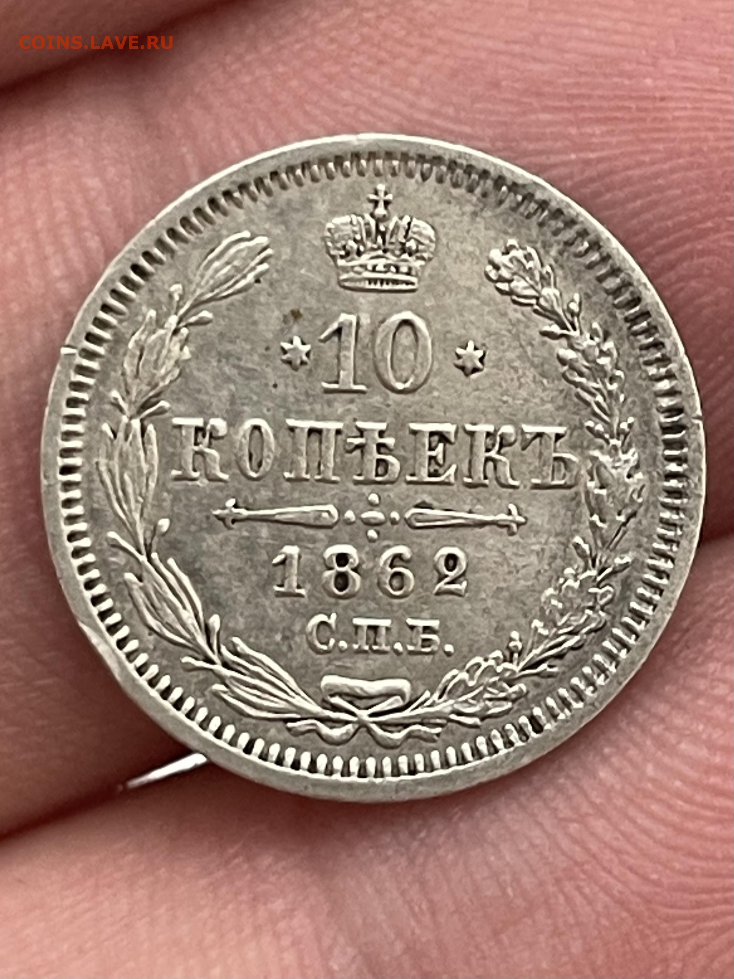 10 копеек 1862 года, СПБ-МИ. До 1.11.