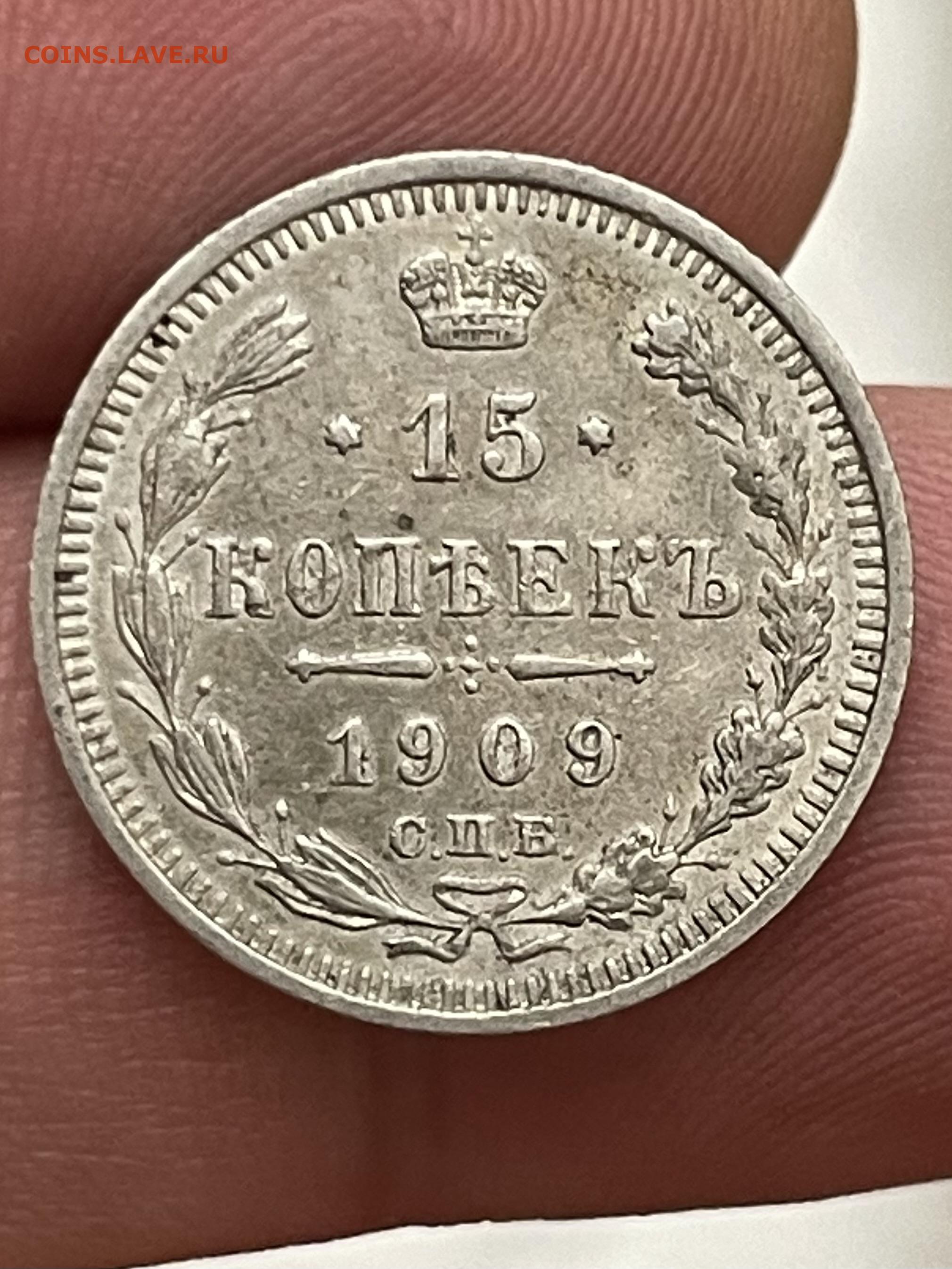 15 копеек 1909 года СПБ-ЭБ. До 1.11.