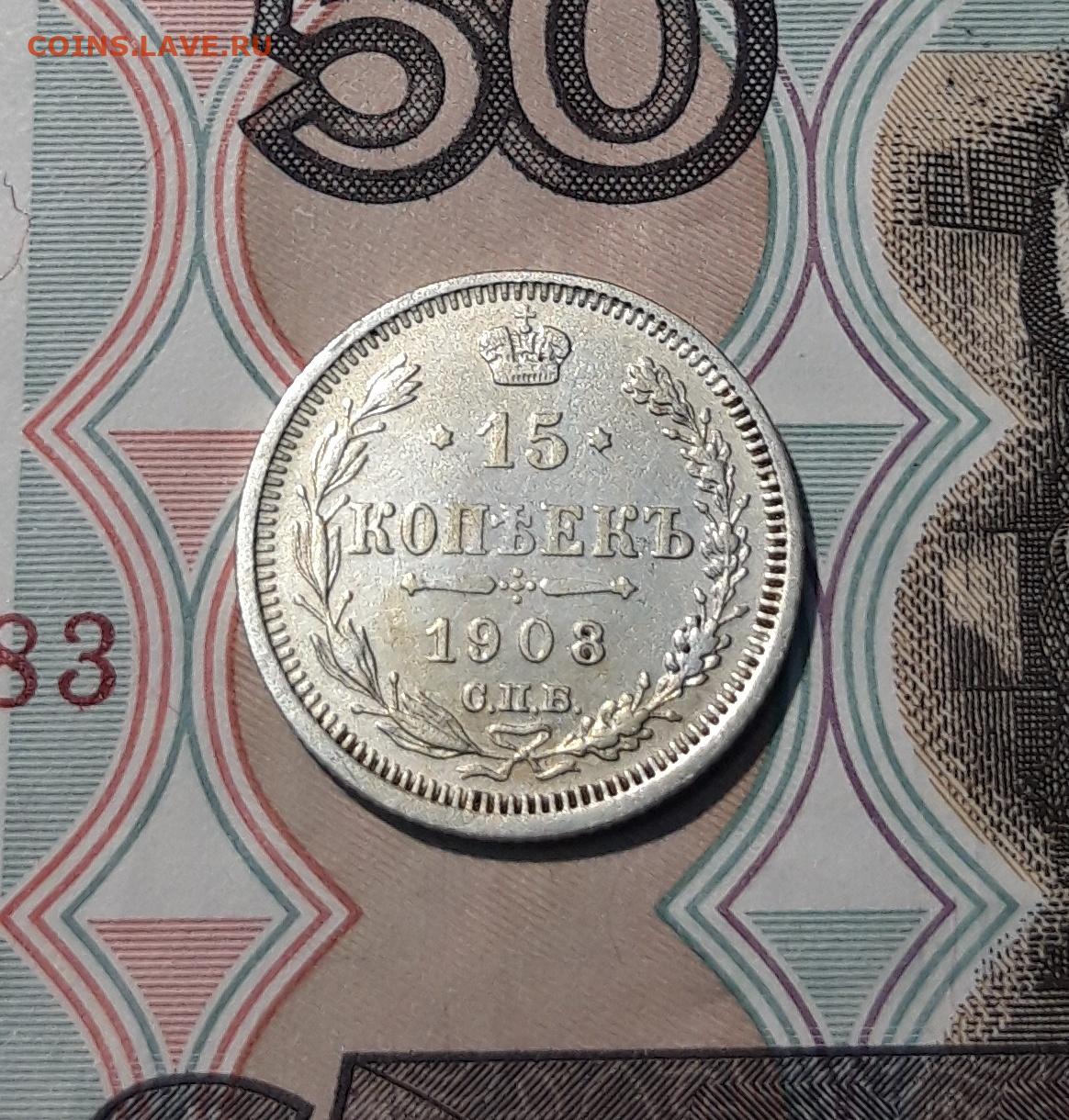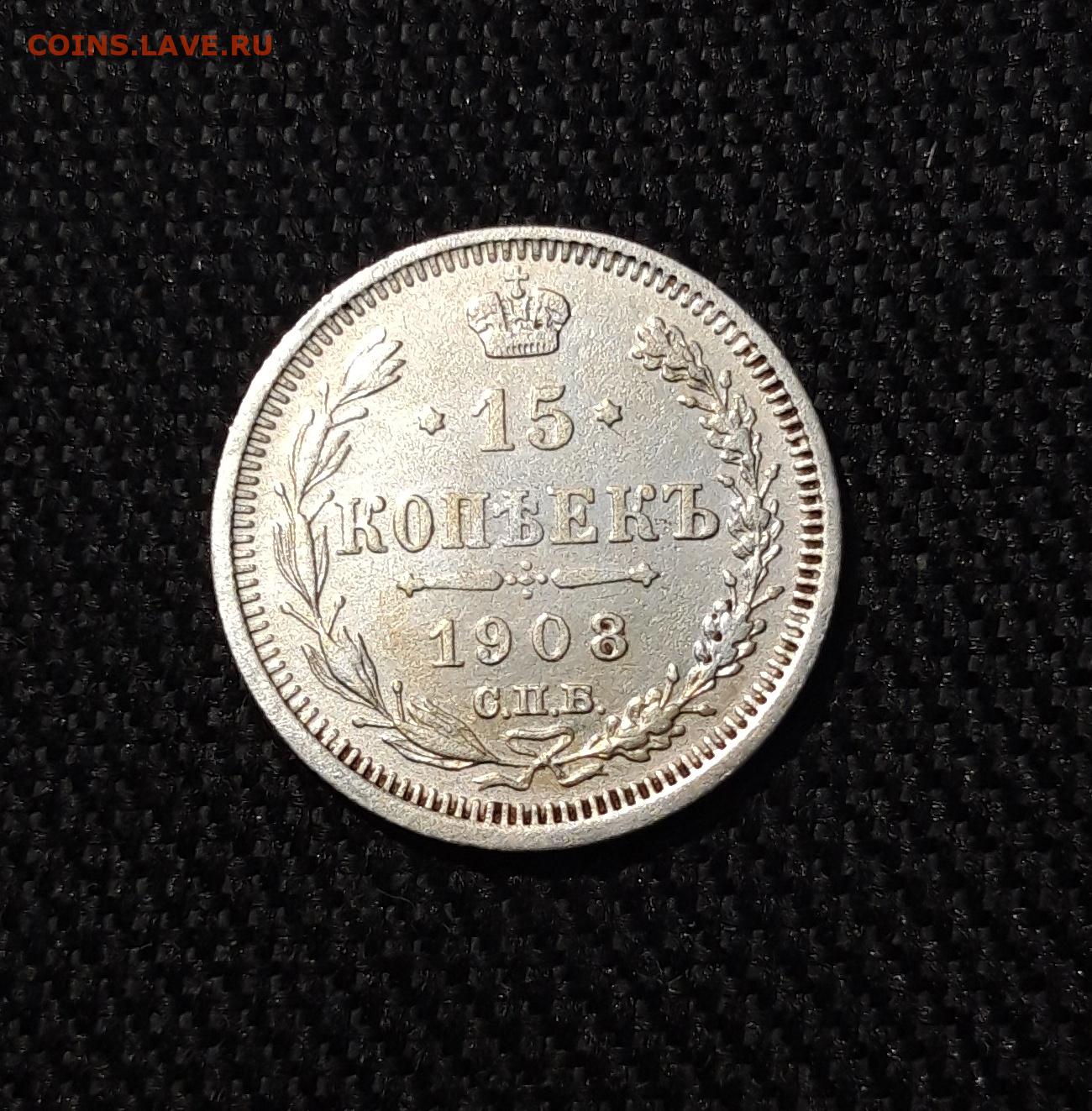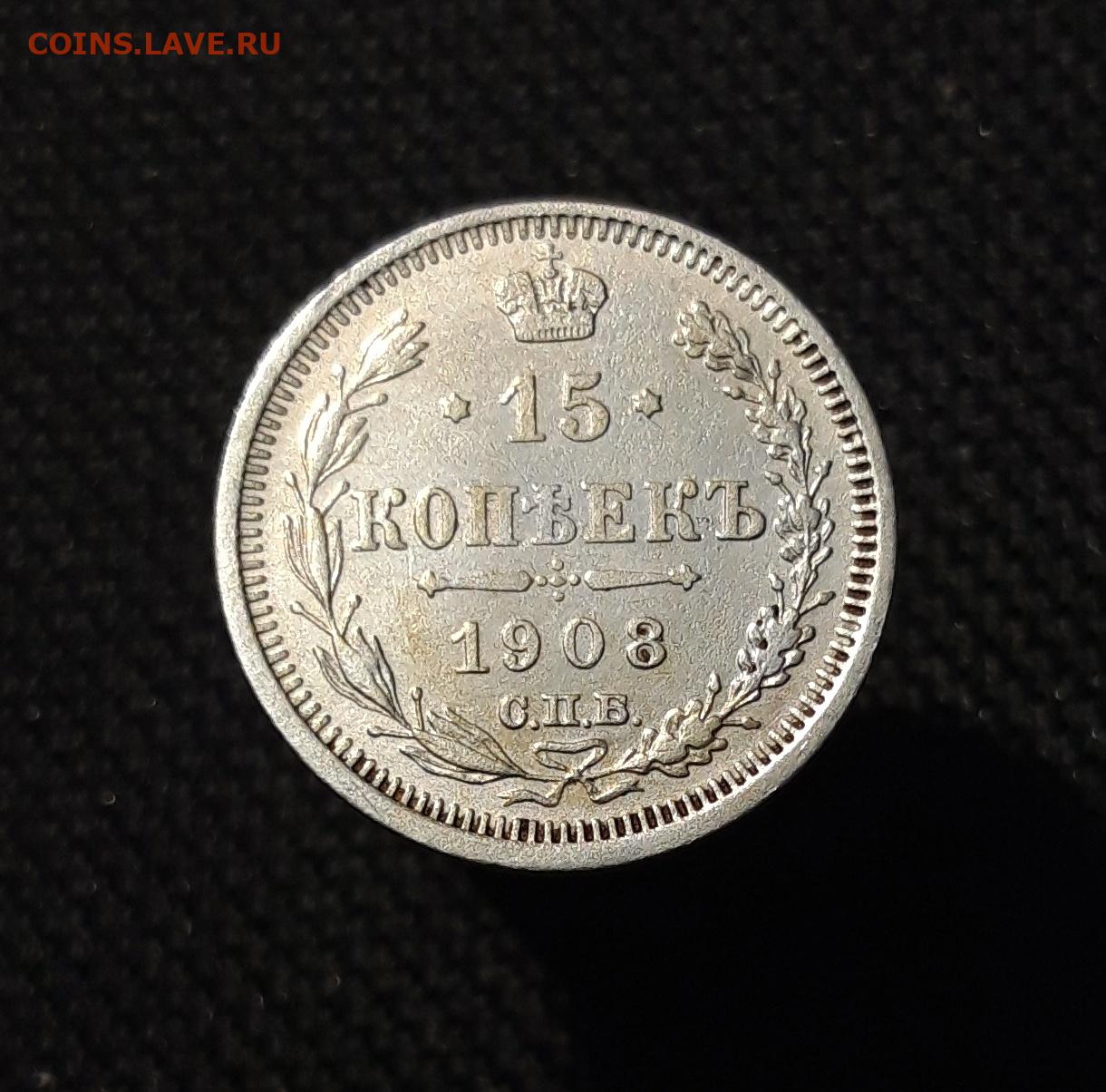 Николай II 15 копеек 1908 года До 06.12