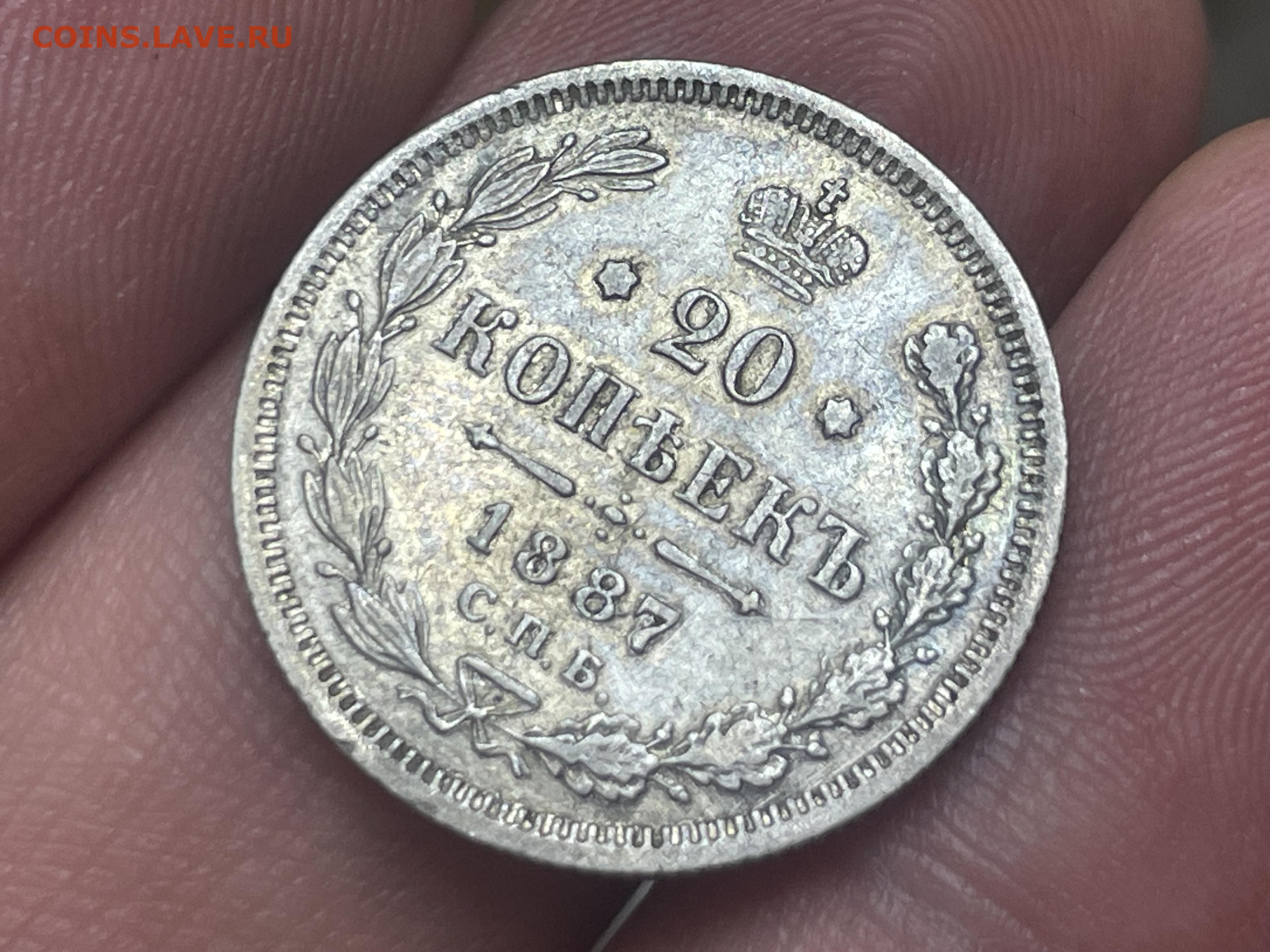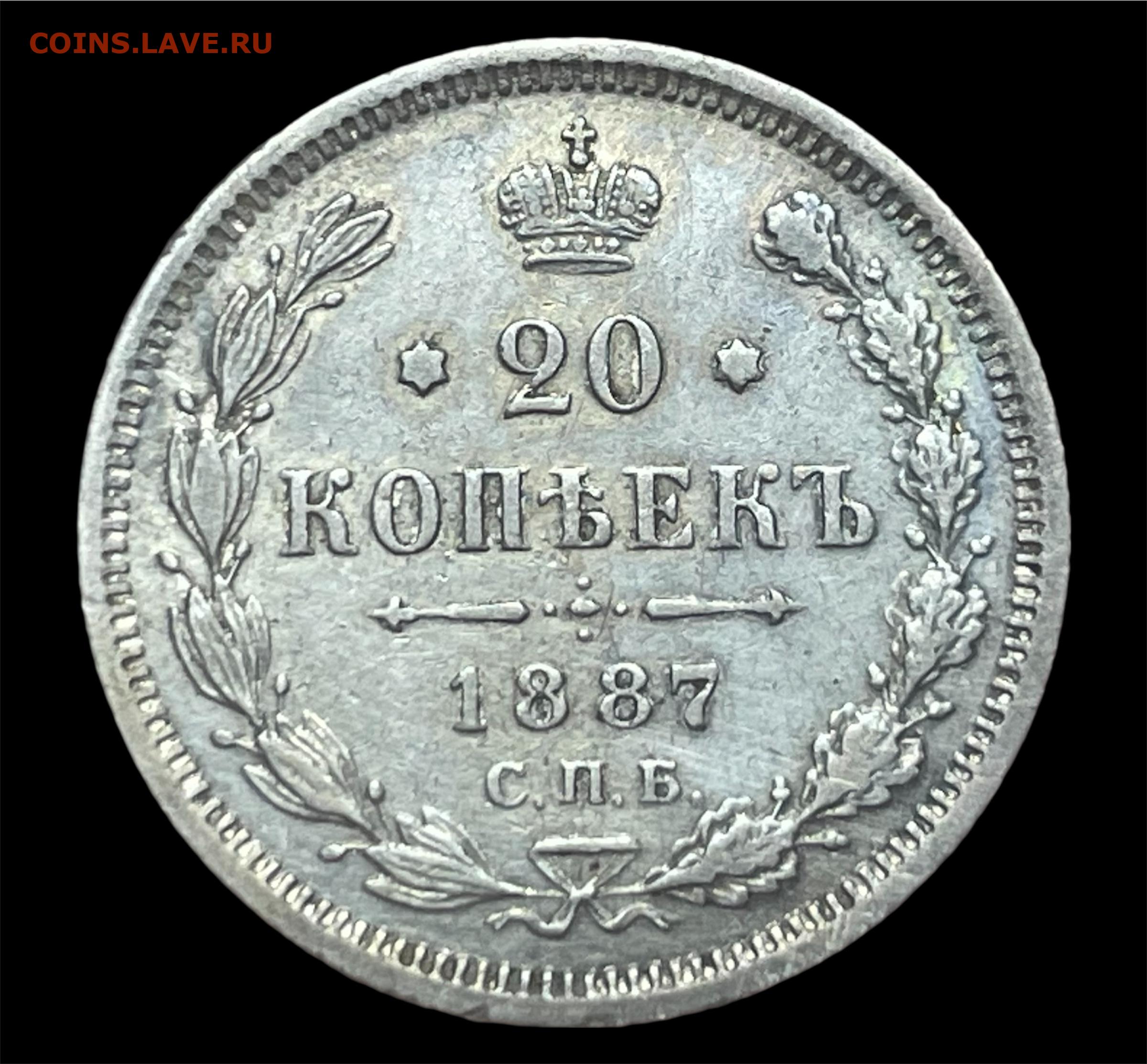 20 копеек 1887 года СПБ-АГ. Отличный. До 15.01