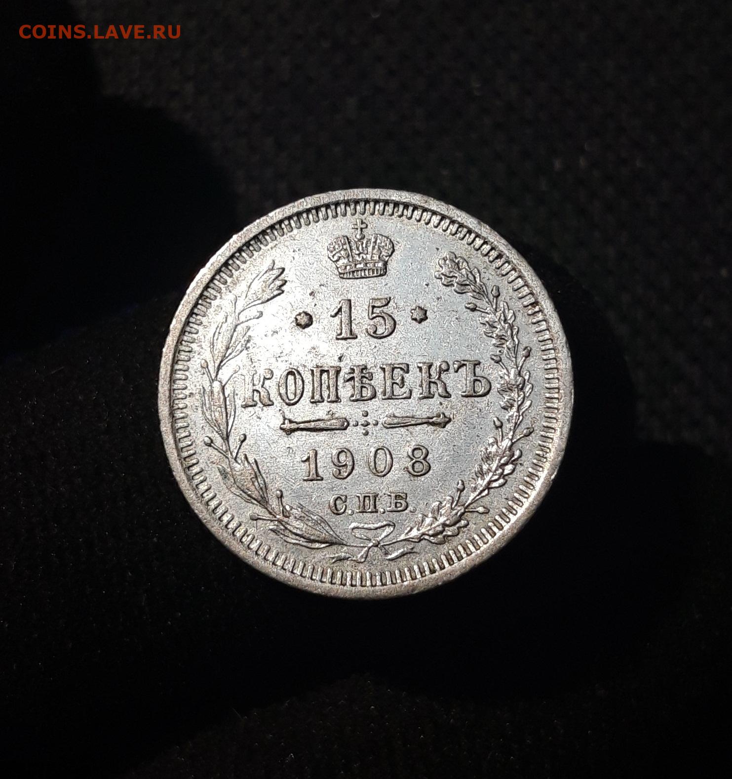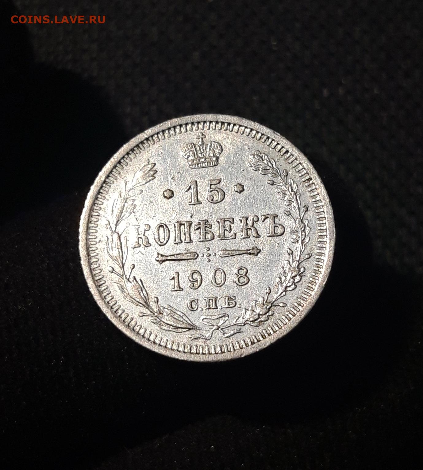 Николай II 15 копеек 1908 года До 29.01