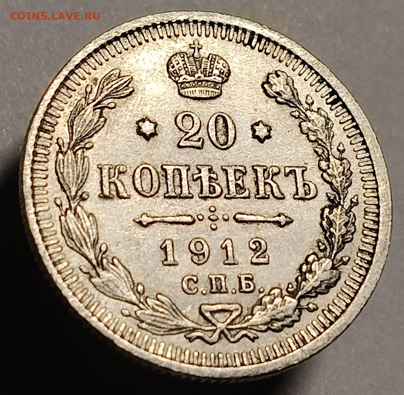 20 копеек 1912 года До 15.02.2026 в 22.00 мск