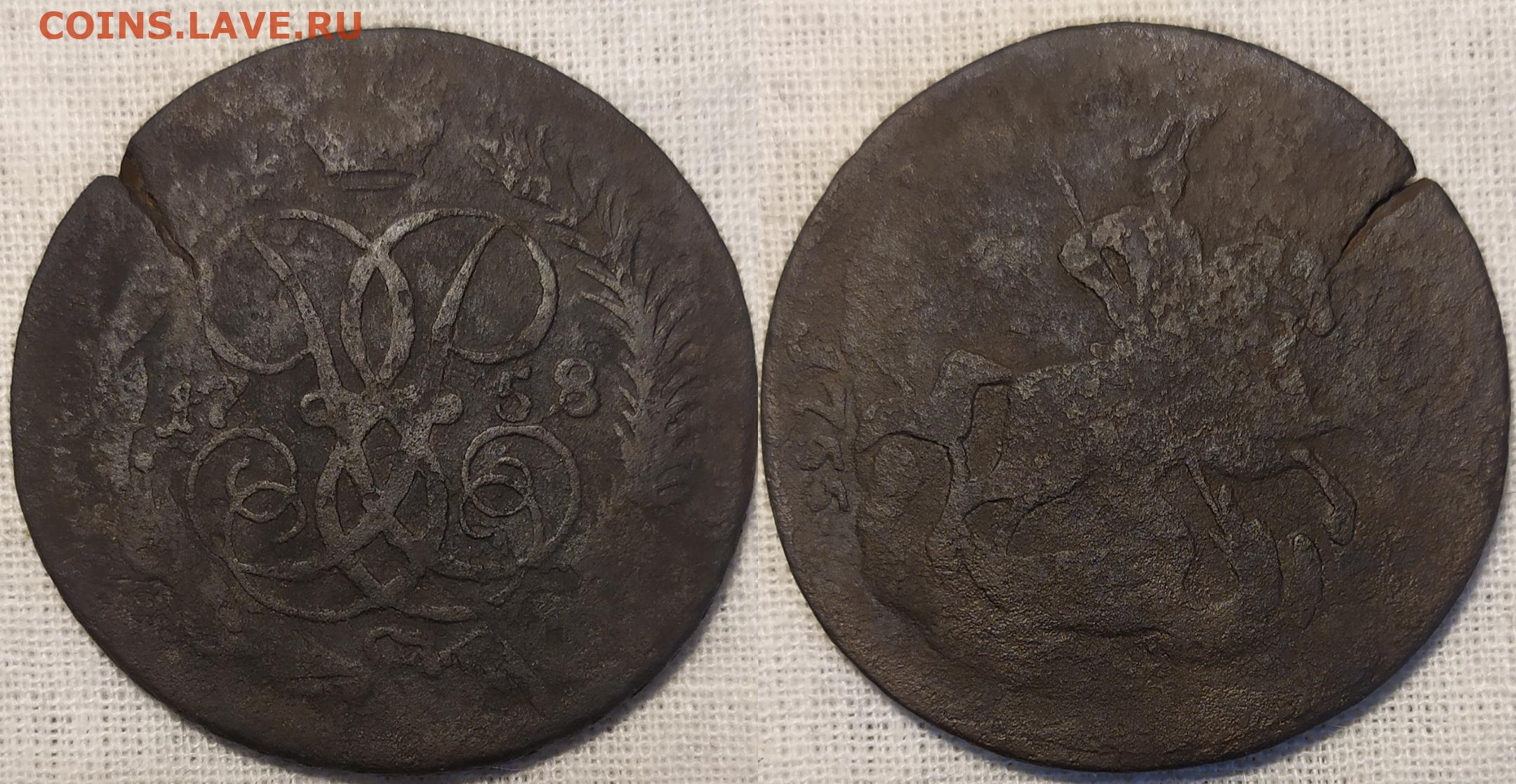 2 копейки 1758 год перечекан гурт сетка.
