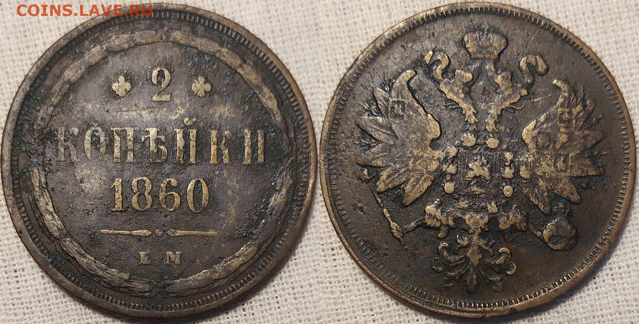 2 копейки 1860 год ЕМ.