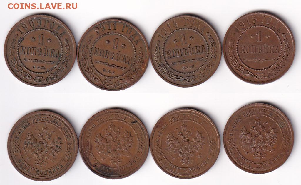 1 копейка 1909-1915 4 шт хорошие до 19.11.25 в 22:00