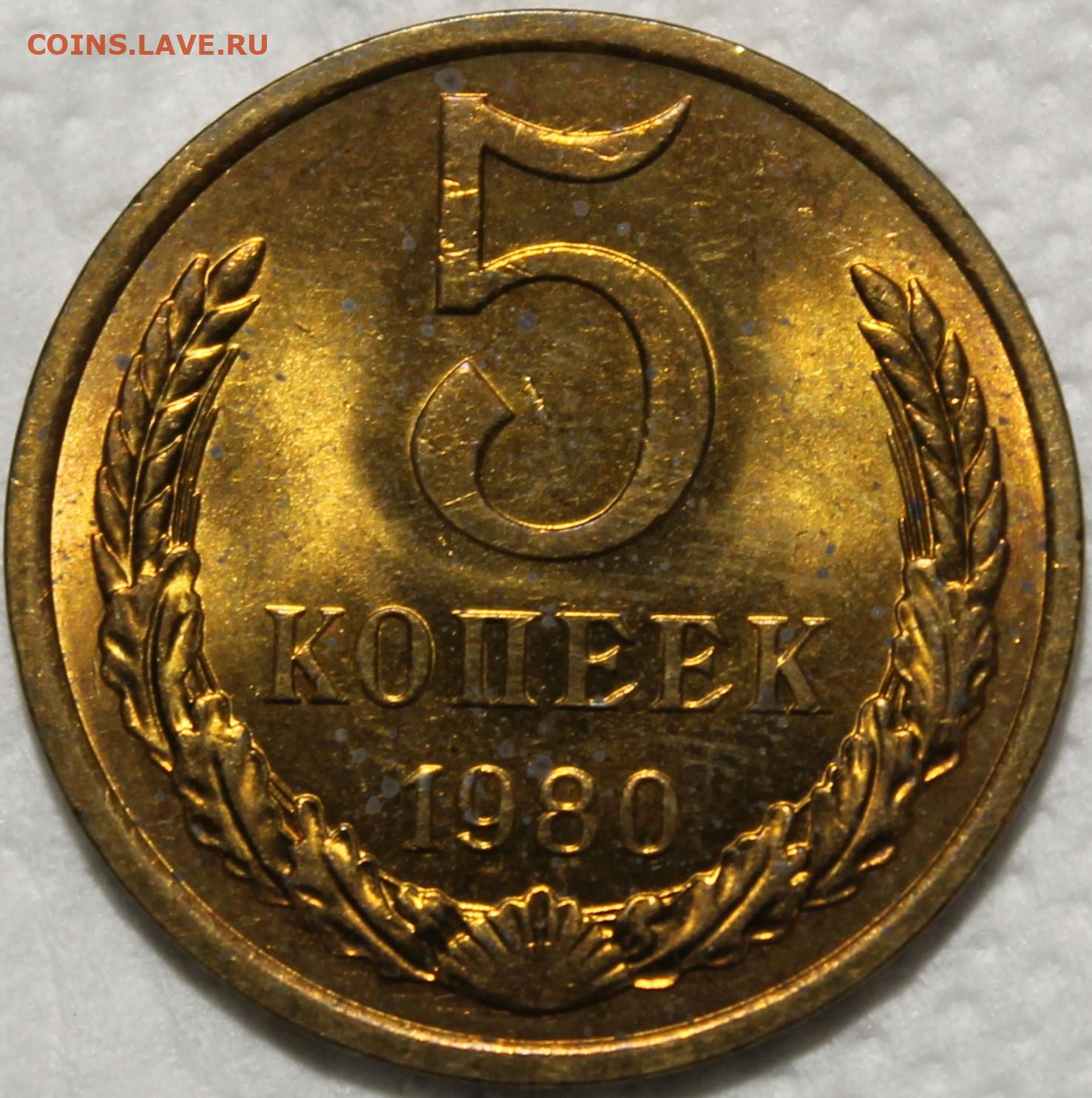 5 копеек 1980 штемпельный блеск