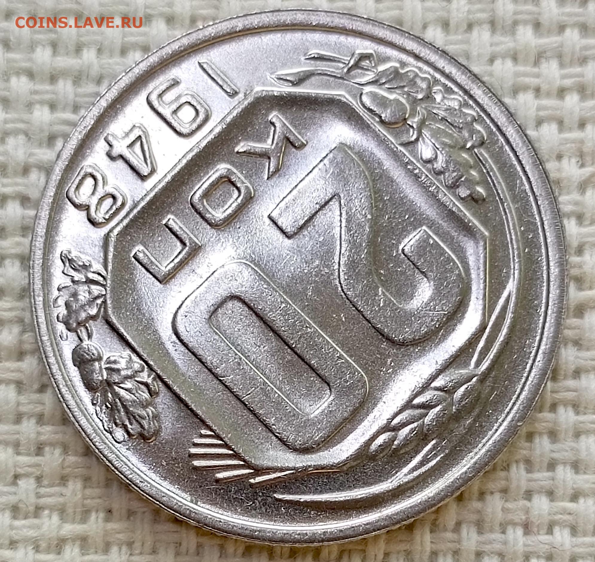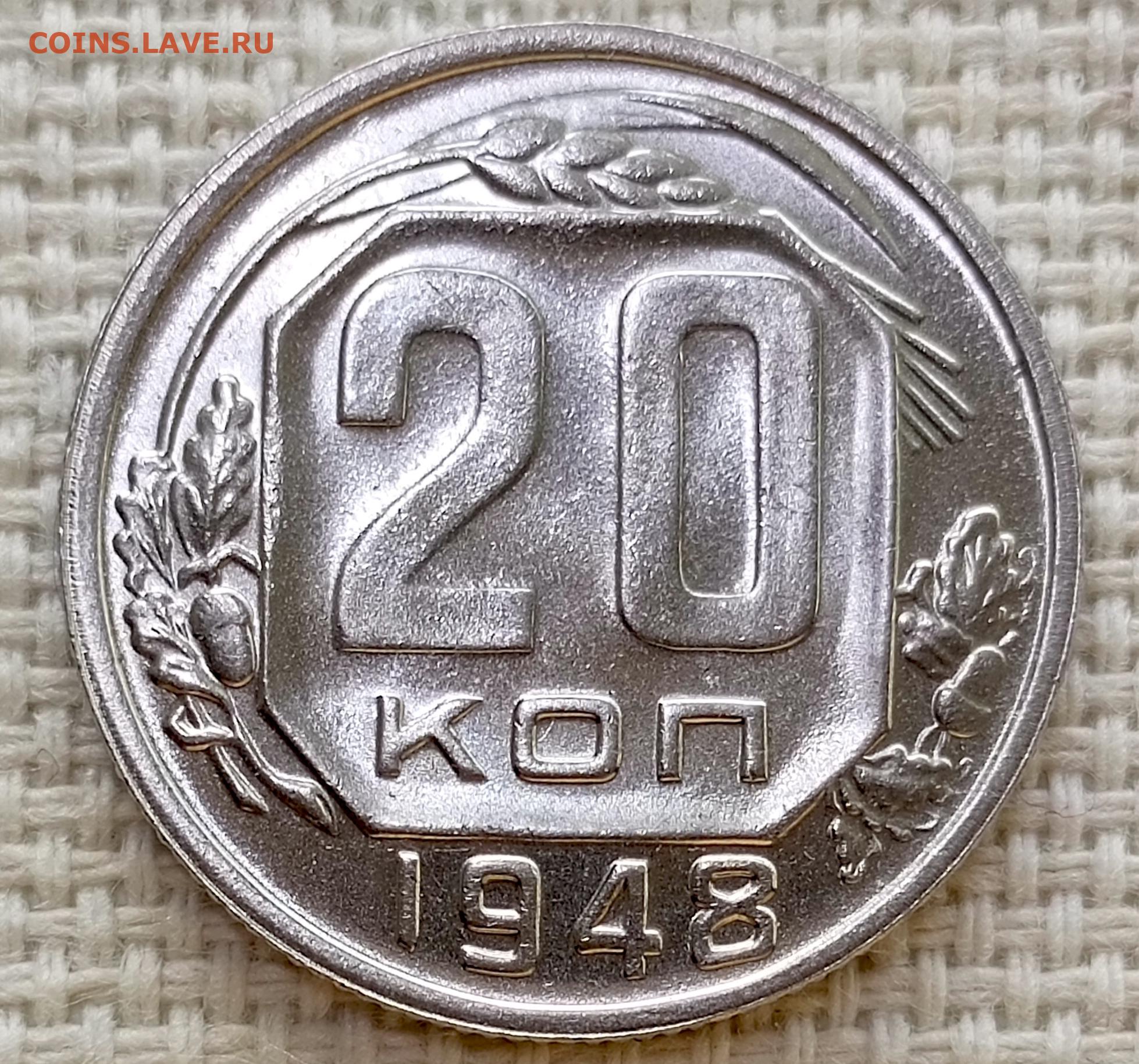 20 копеек 1948 года Штемпельный Блеск до 8.11 в 22.00