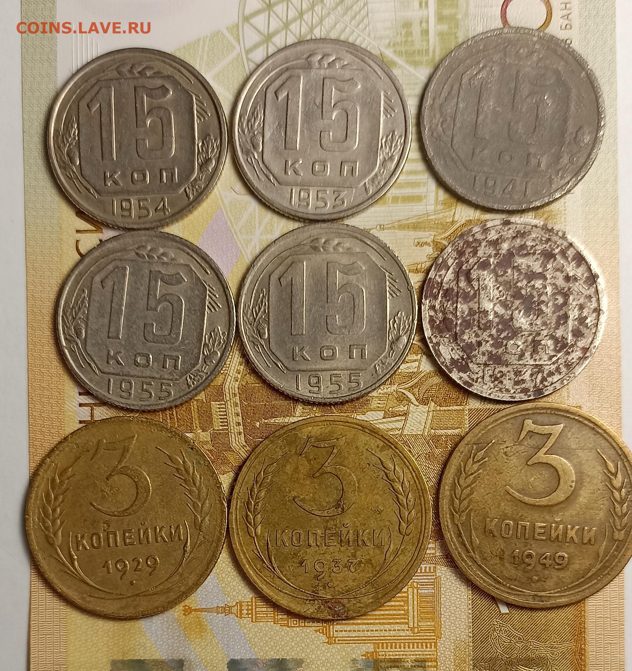 3-15 копеек 1932-55 9 штук