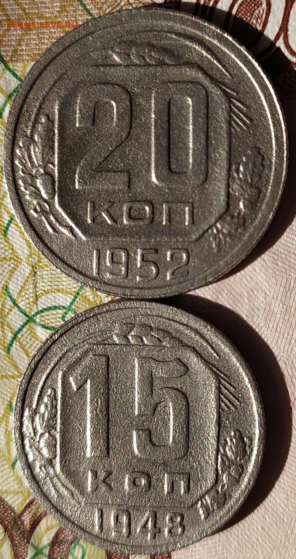 20 коп 1952 шт.3 + 15 коп 1948 шт.2В до 1.03.26. 22-00 Мск