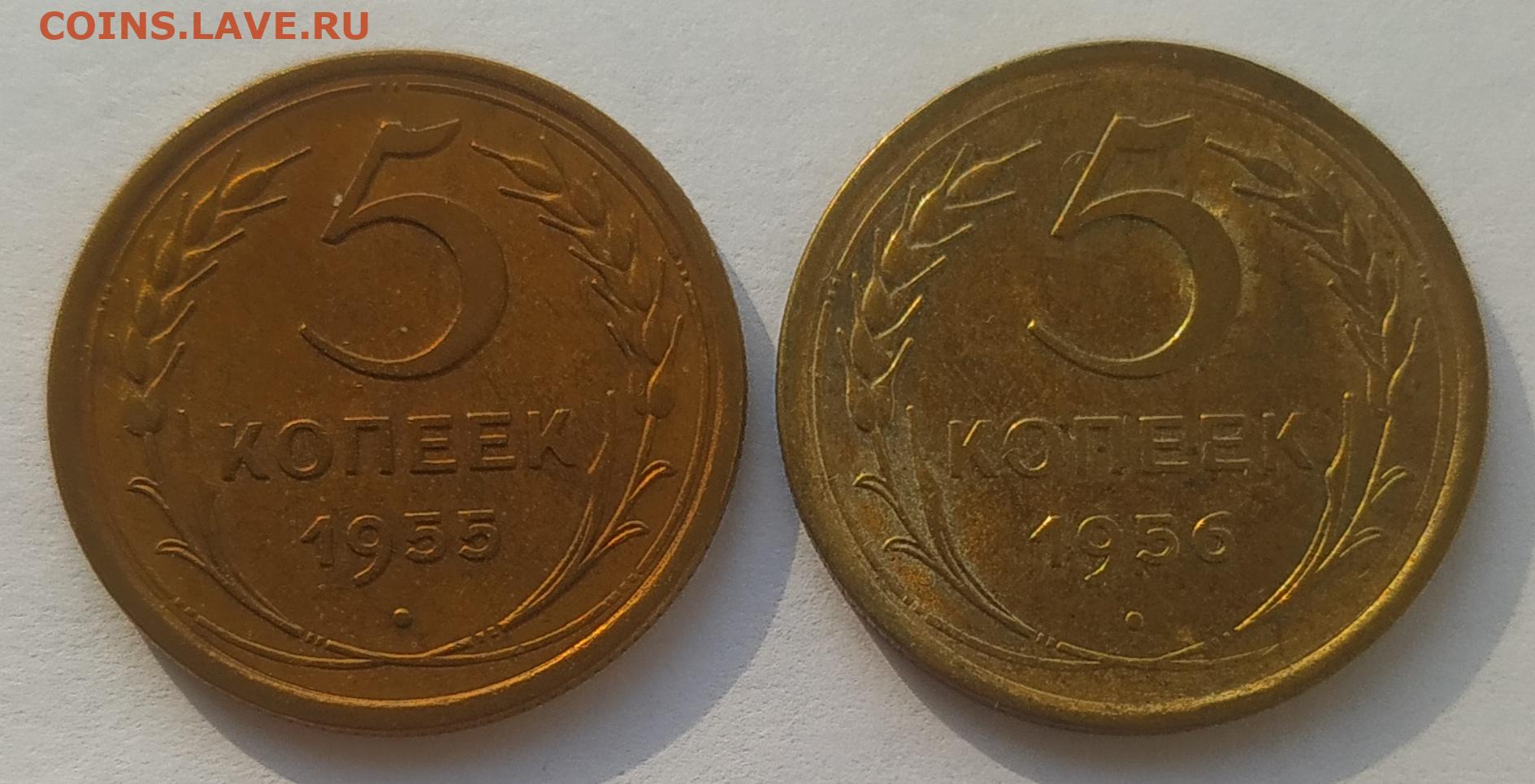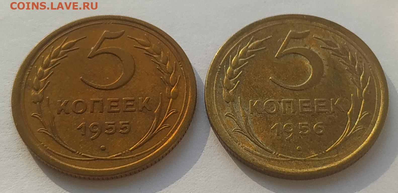 5 копеек 1955, 1956 aUNC до 13.03.2026