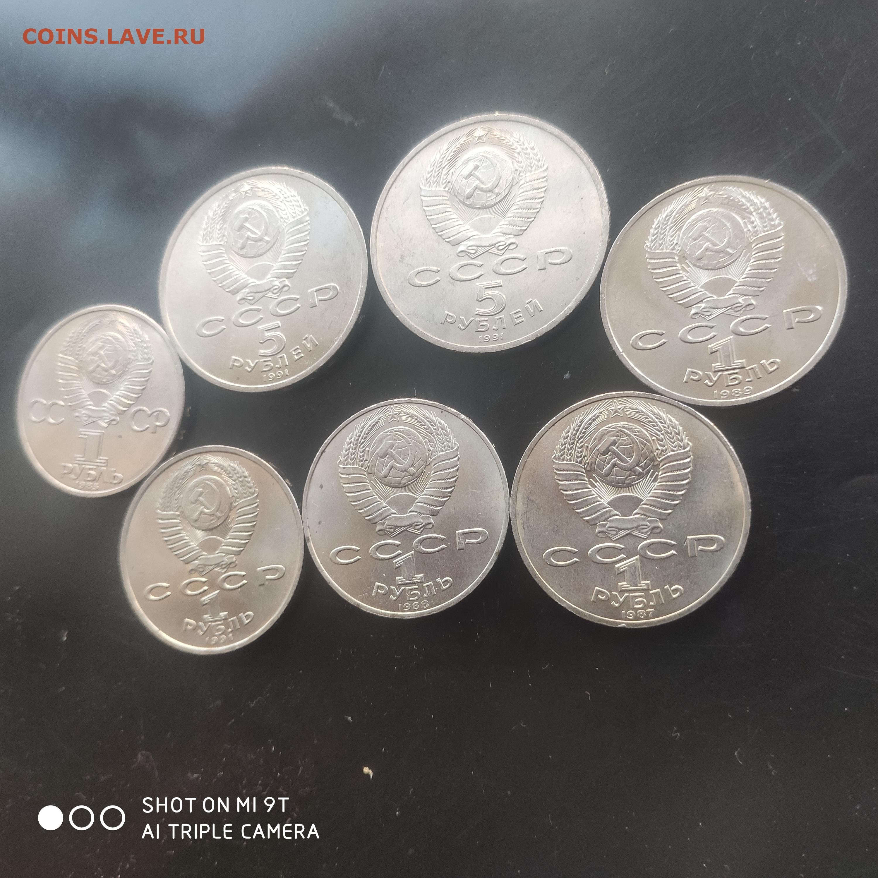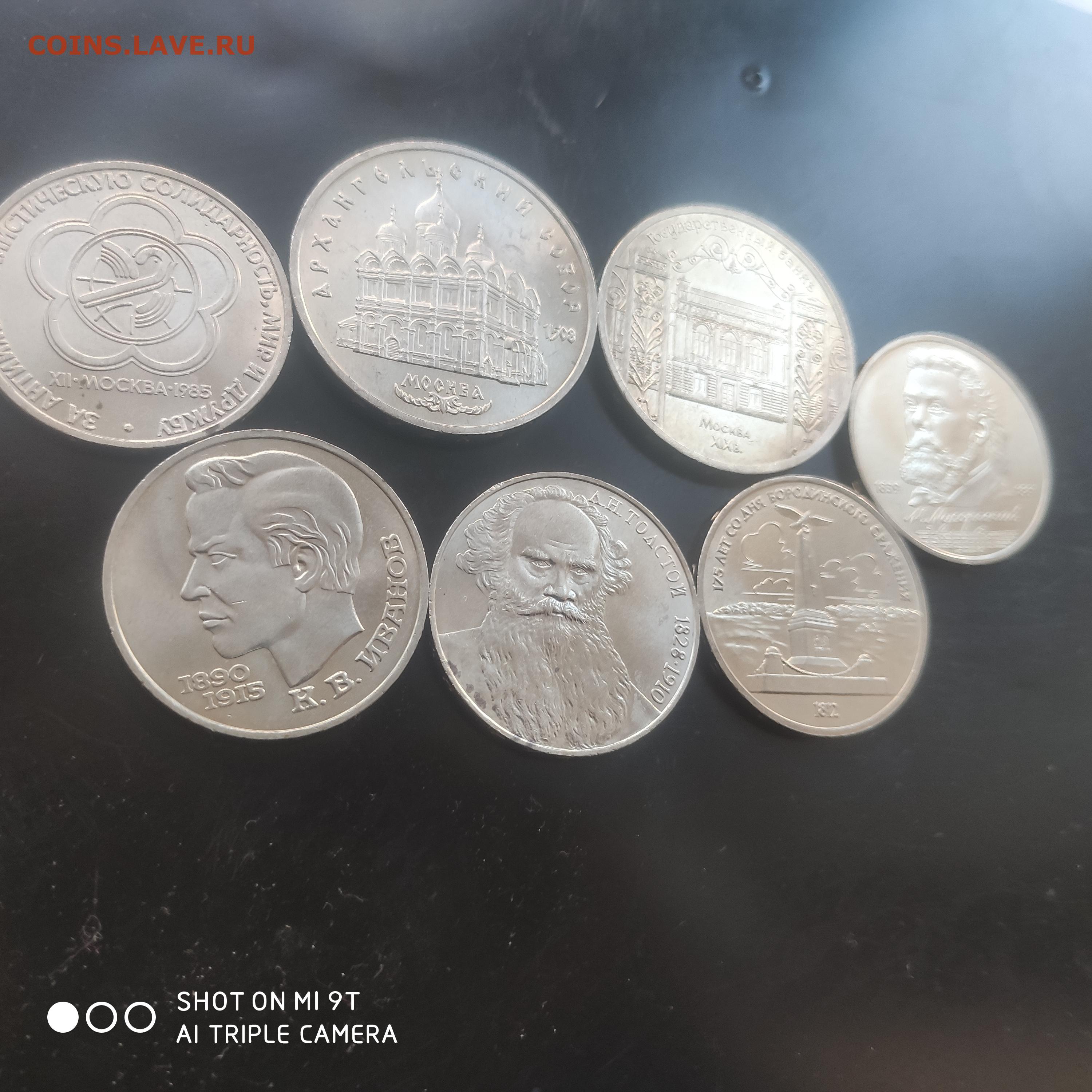 7 юбилейных мешковых 1 и 5 рублей СССР до 09.02.25 г. 22.0