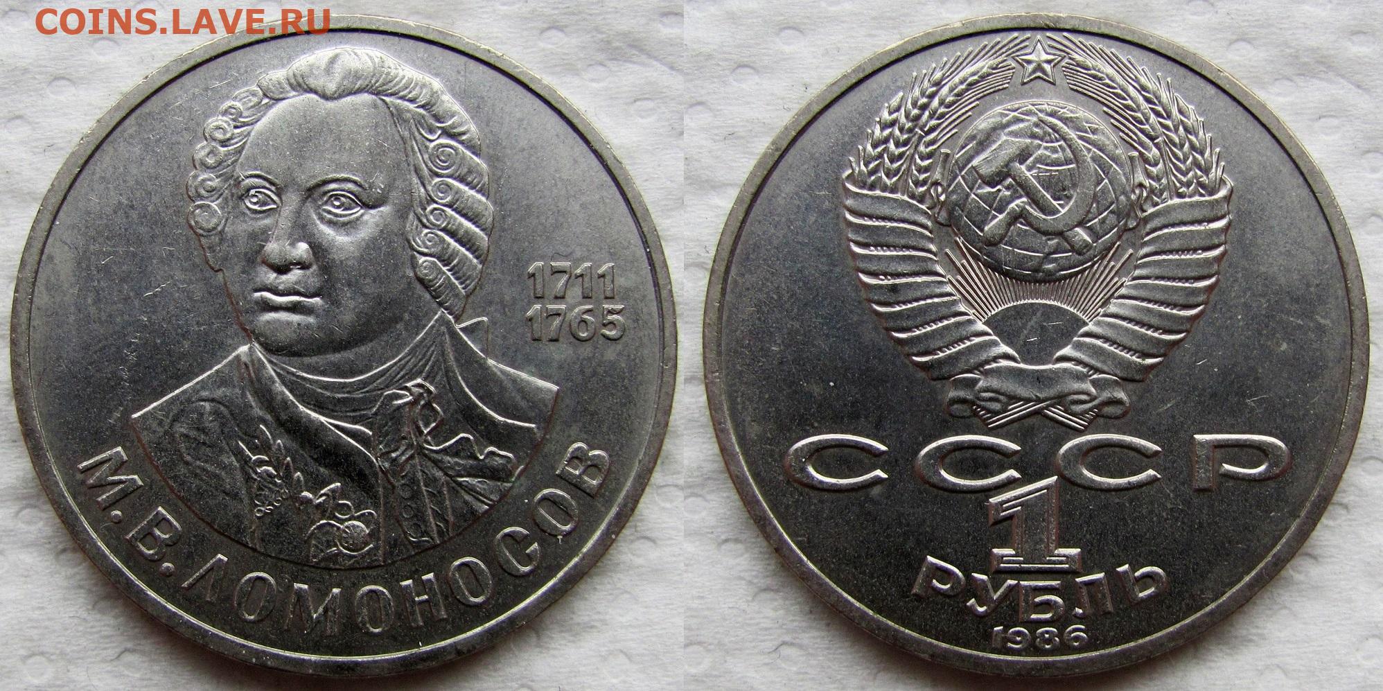 1 рубль 1986, 275 лет со дня рождения Ломоносова. До 04.12