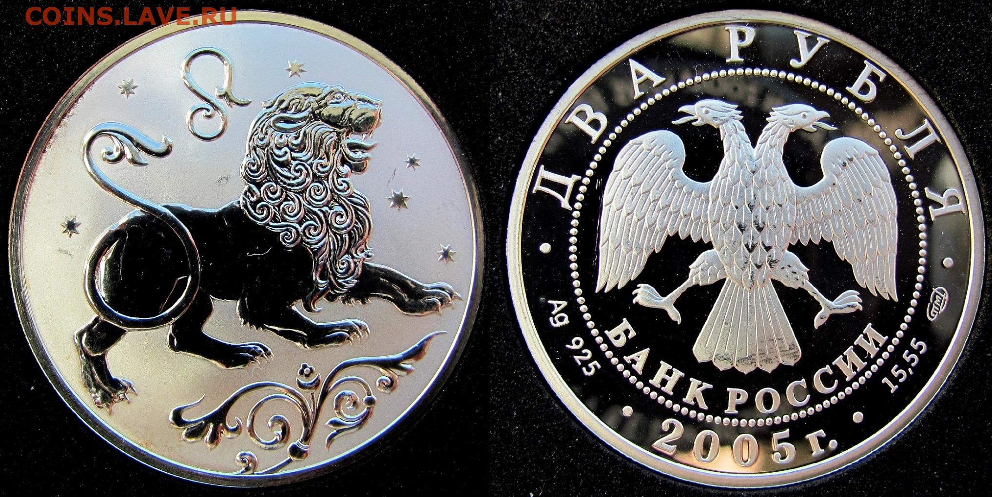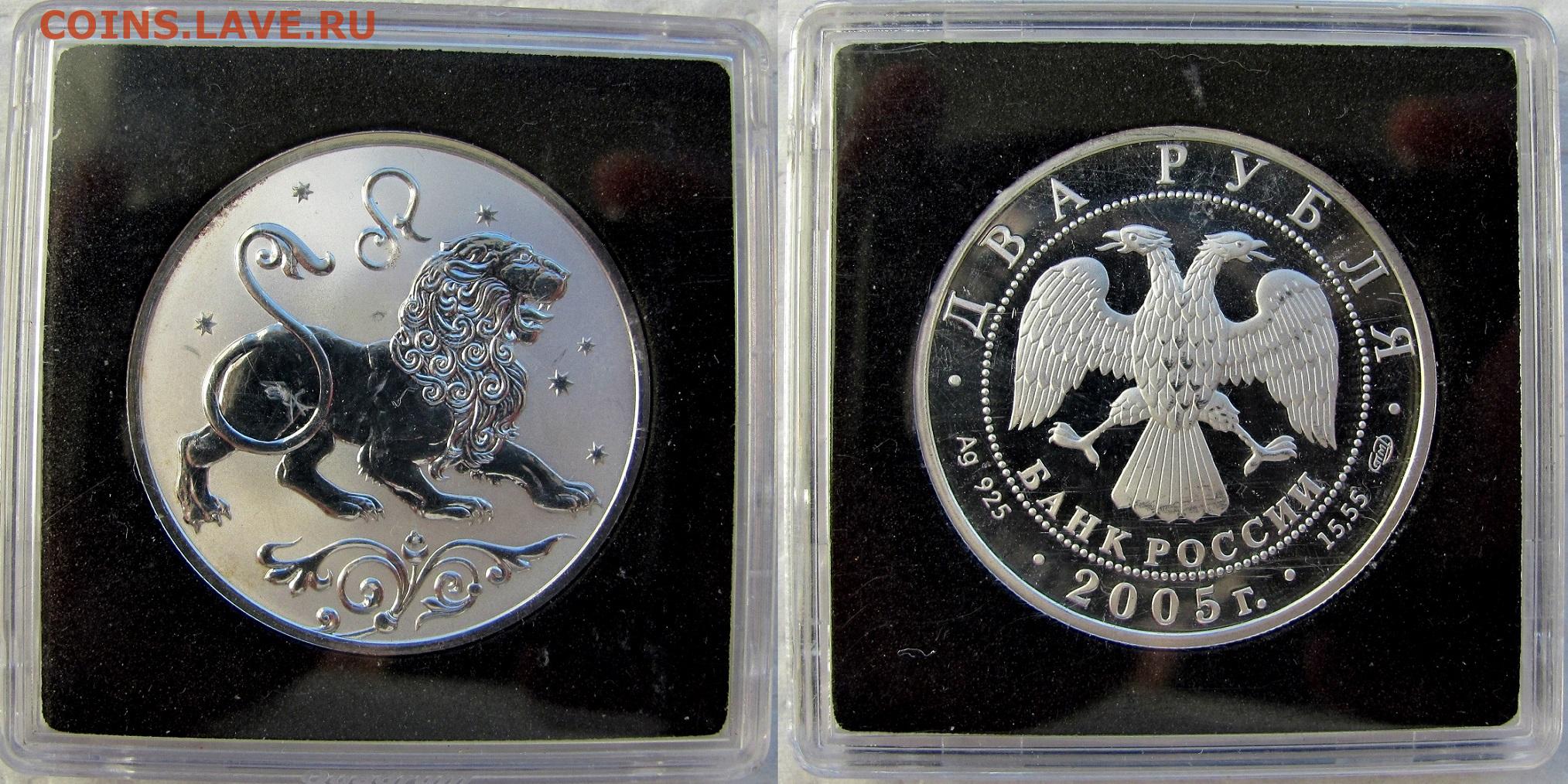 2 рубля 2005. Лев. Серия: Знаки зодиака. До 11.11.25 22-00