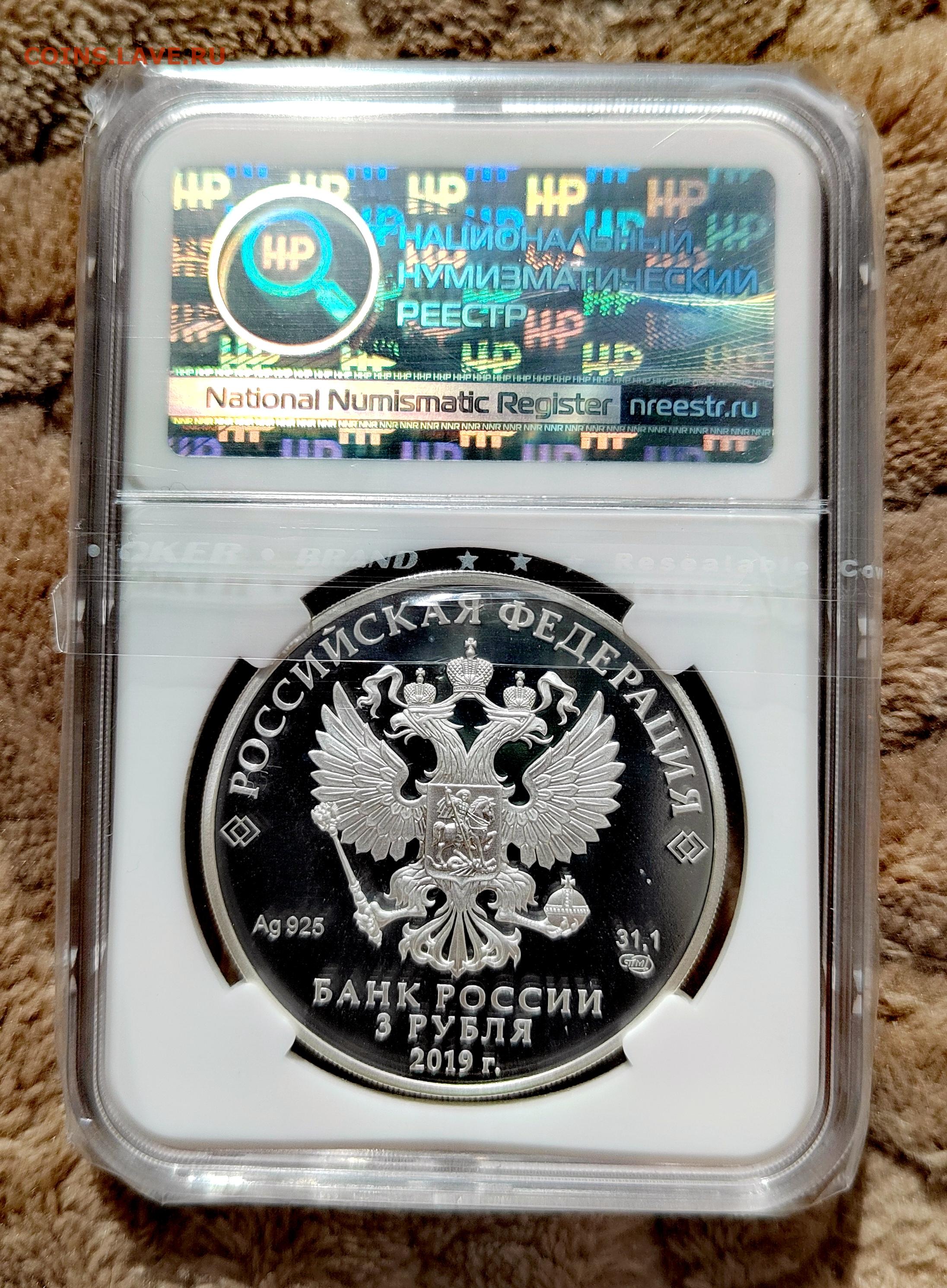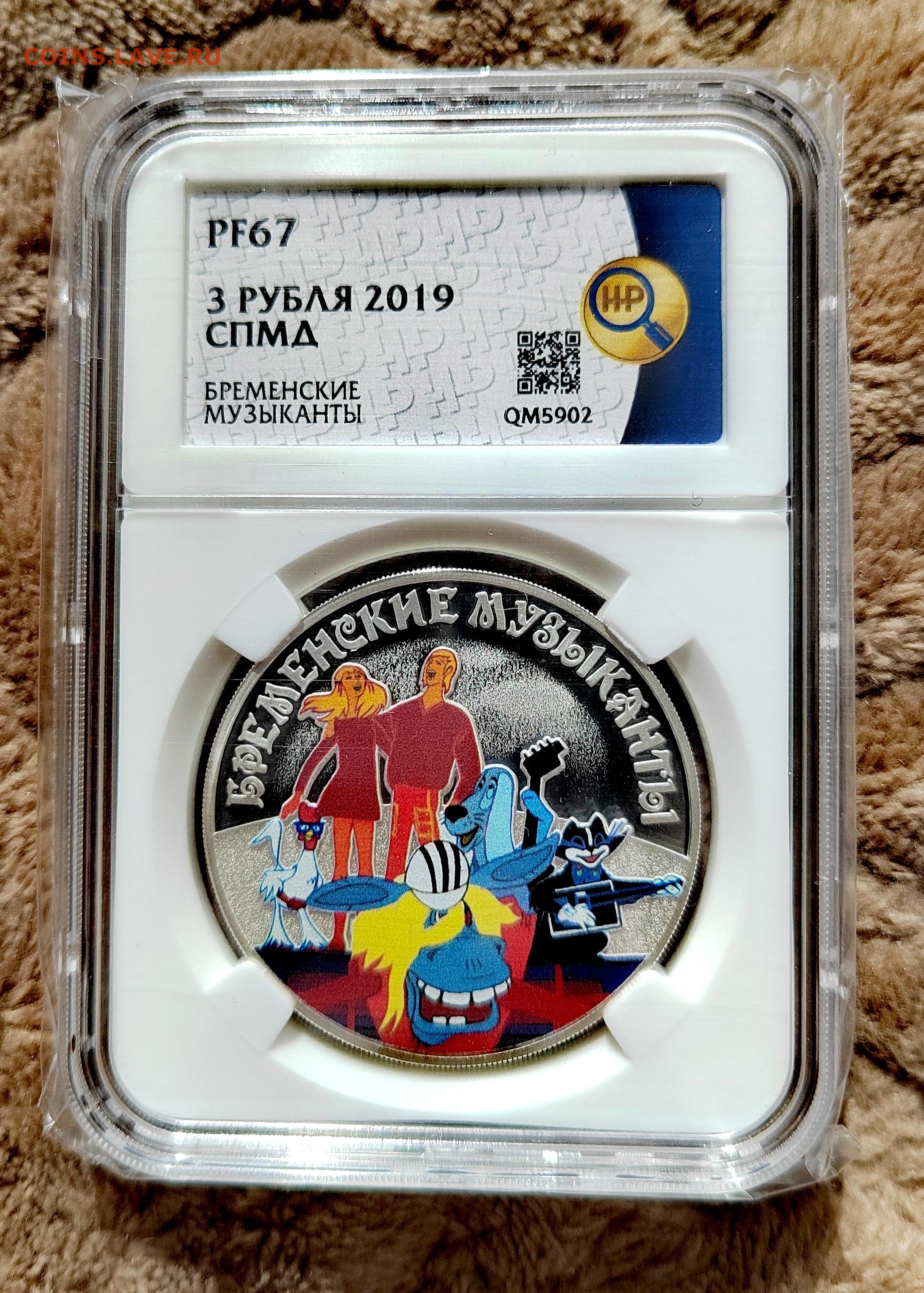 3 рубля 2019 СПМД Бременские музыканты PF67 в слабе ННР.