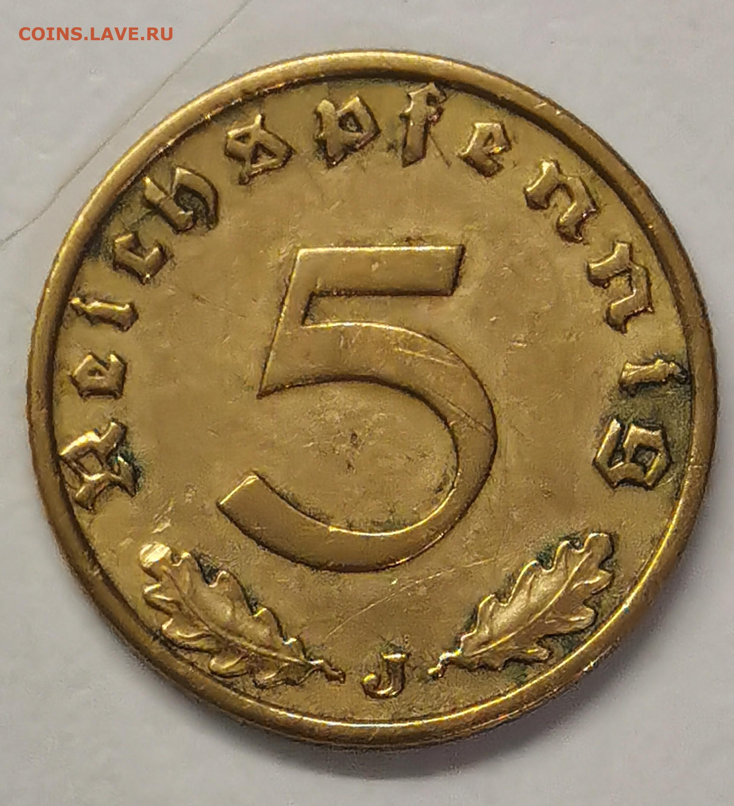 3-й рейх 5 пф. 1939 г. J