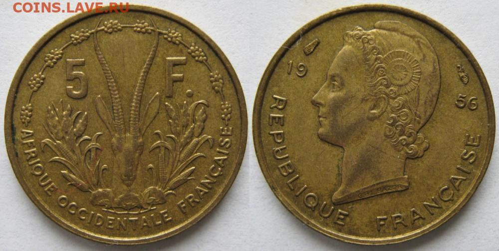 Франц Зап Африка 5 франков 1956 до 21-10-25 в 22:00