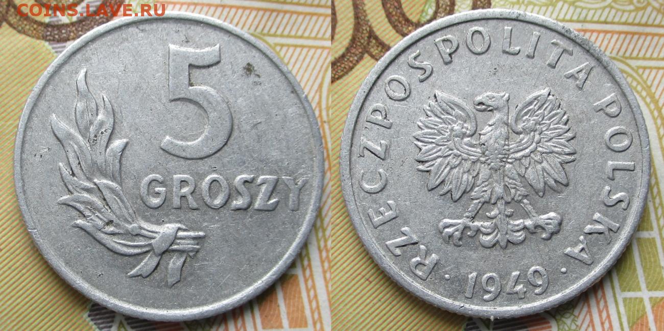 Польша 5 грошей 1949 Al до 21-10-25 в 22:00