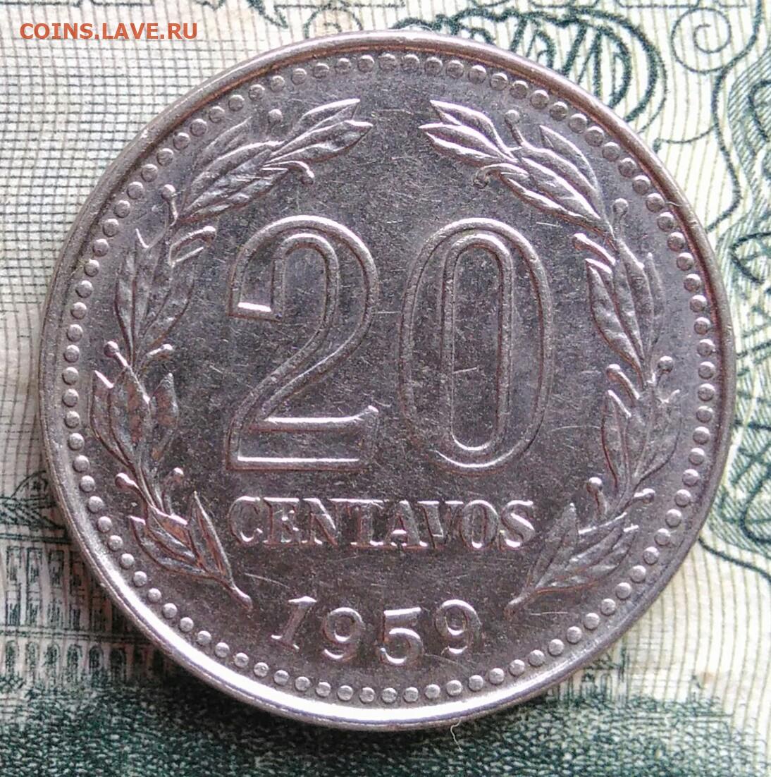 Аргентина 20 сентаво 1959 года до 10.11.2025
