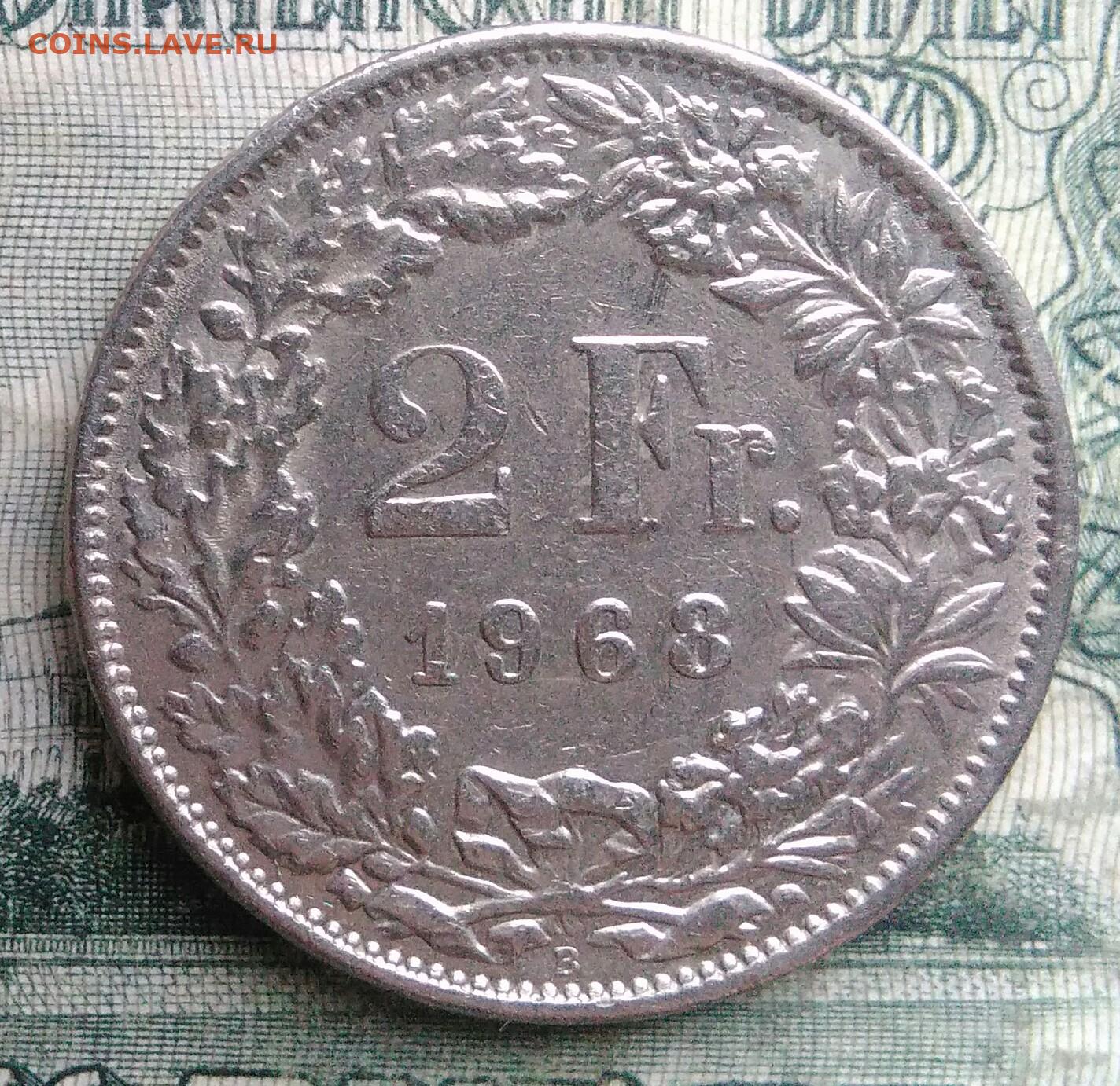 Швейцария 2 франка 1968 года до 01.12.2025