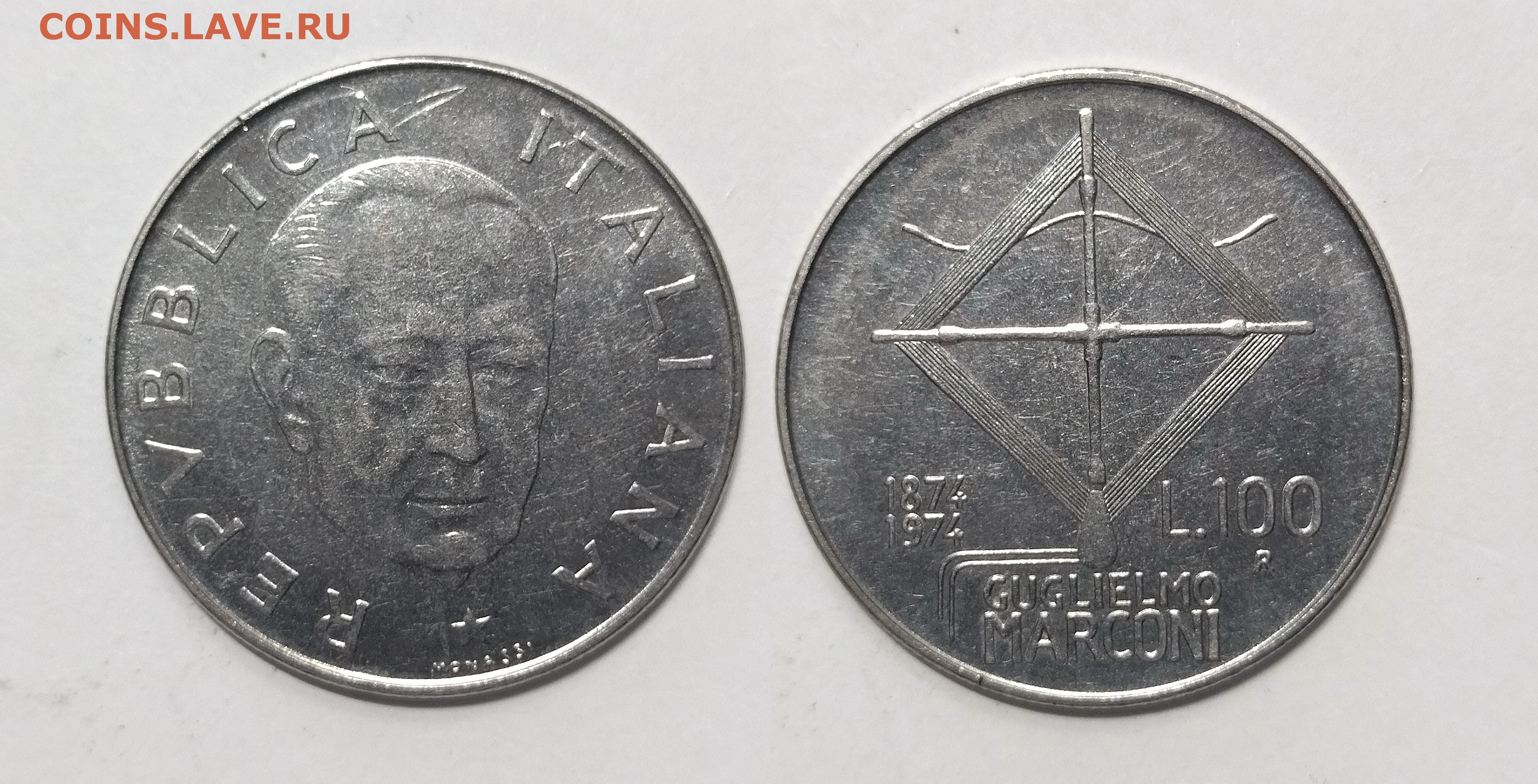 Италия 100 лир 1974 года Маркони - 5.12