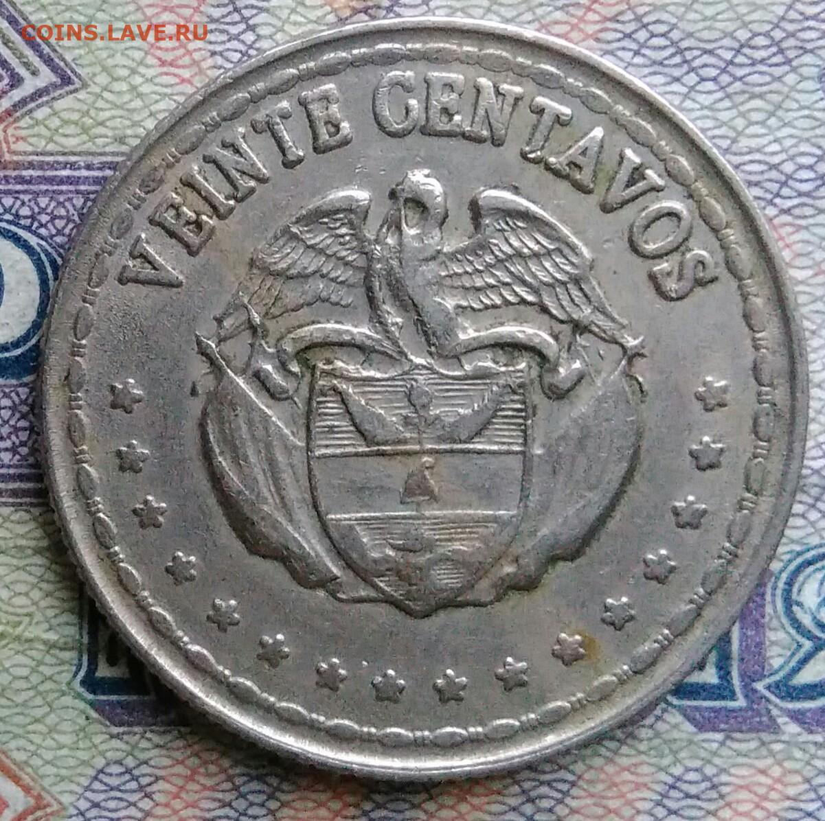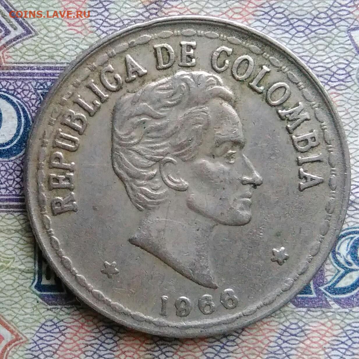 Колумбия 20 сентаво 1966 года до 19.01.2026