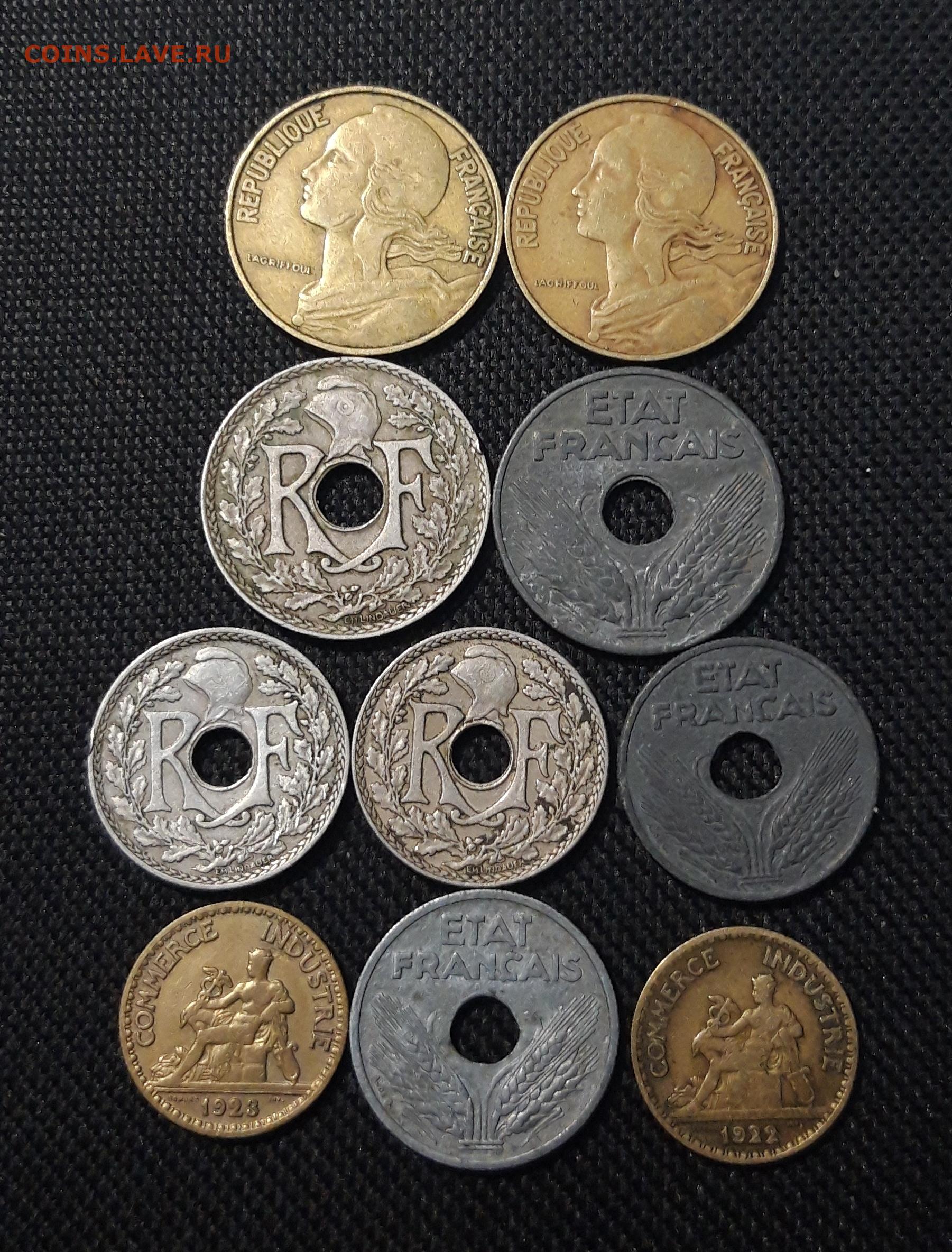 ФРАНЦИЯ 10 - 50 САНТИМОВ 1922 - 1963 года 10 монет До 20.01