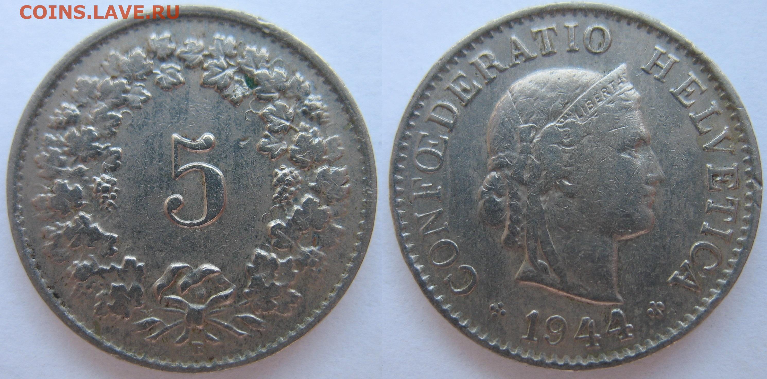 Швейцария 5 раппен 1944 г. До 29.01.26