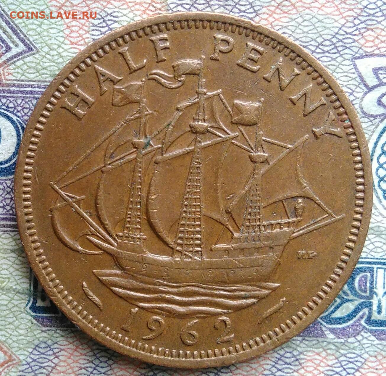 Великобритания 1/2 пенни 1962 года до 02.02.2026