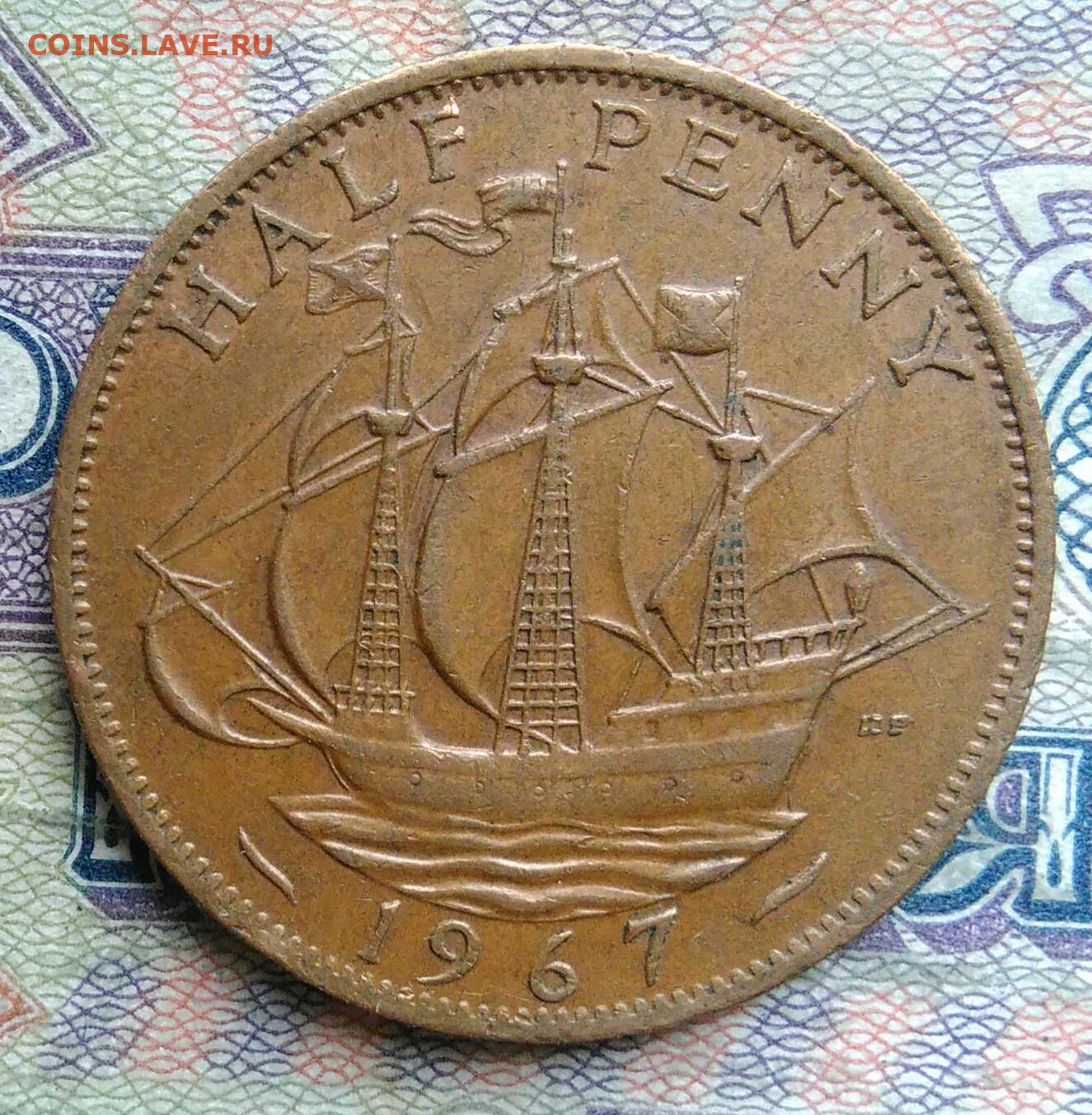 Великобритания 1/2 пенни 1967 года до 02.02.2026