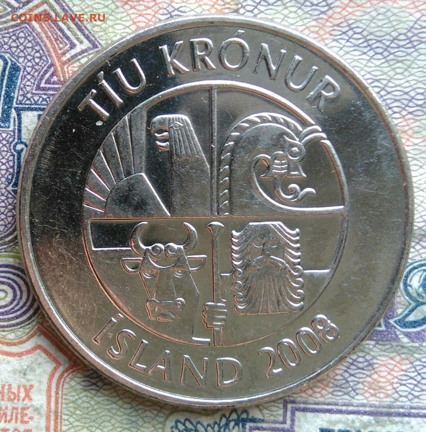 Исландия 10 крон 2008 года до 09.02.2026