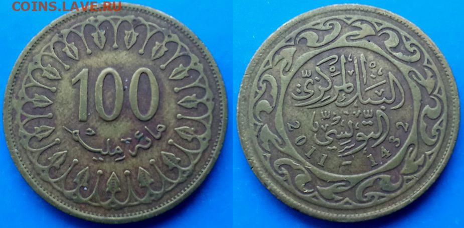 Тунис - 100 миллимов 2011 года до 5.03