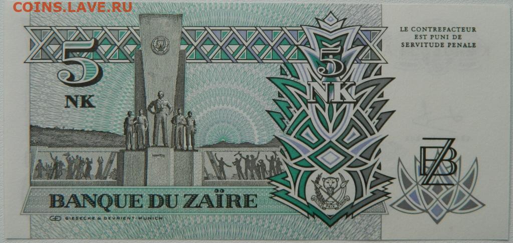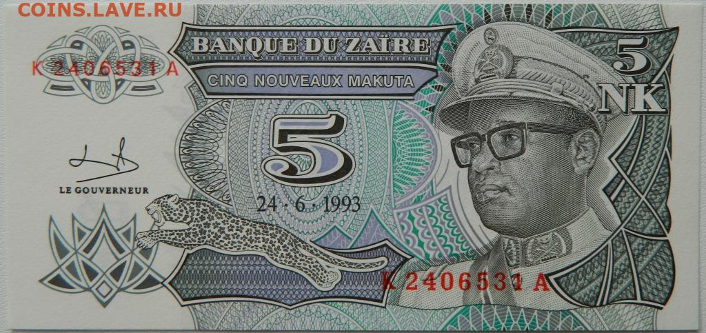 Заир 5 новых макута 1993 г. до 21.10.25