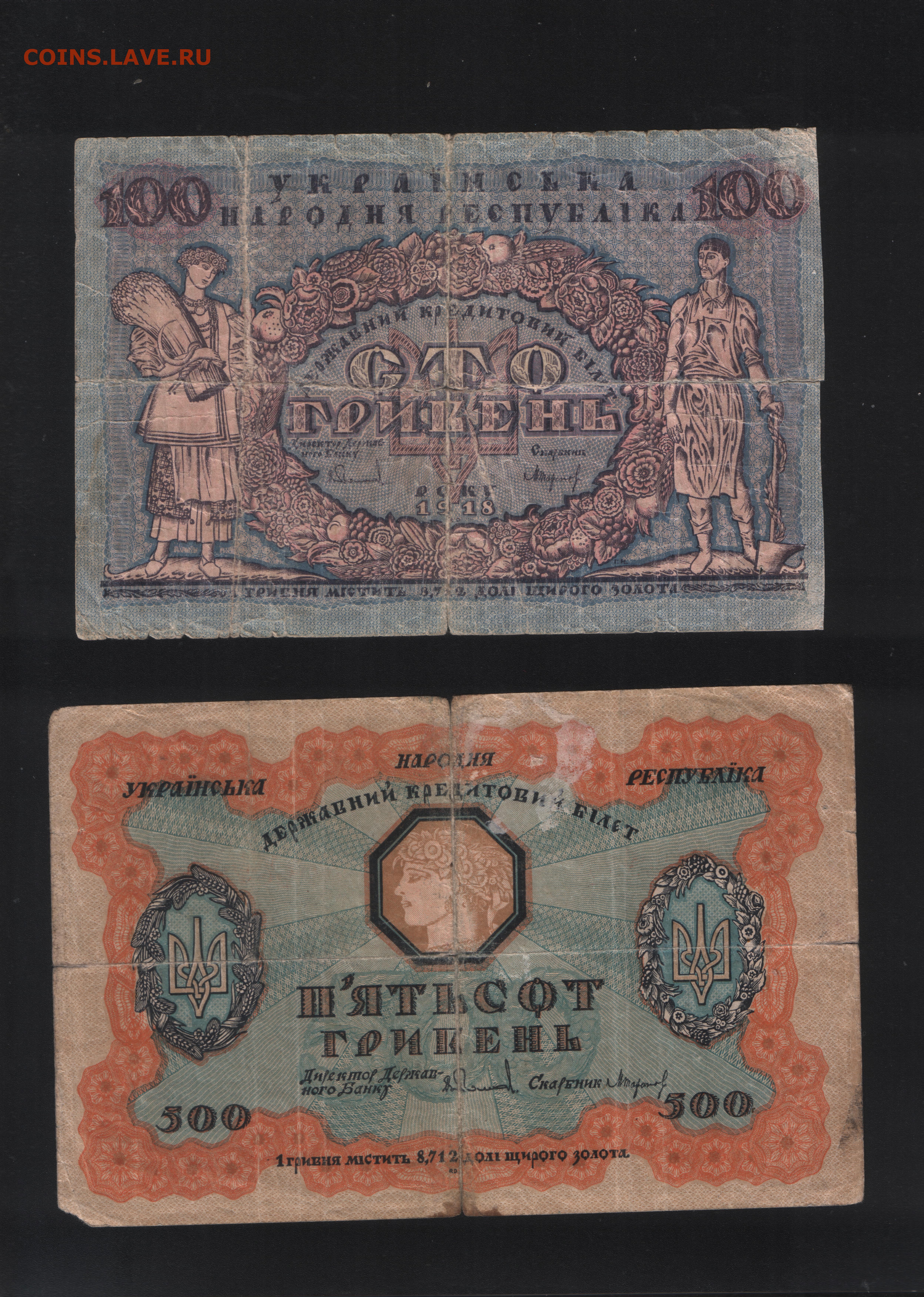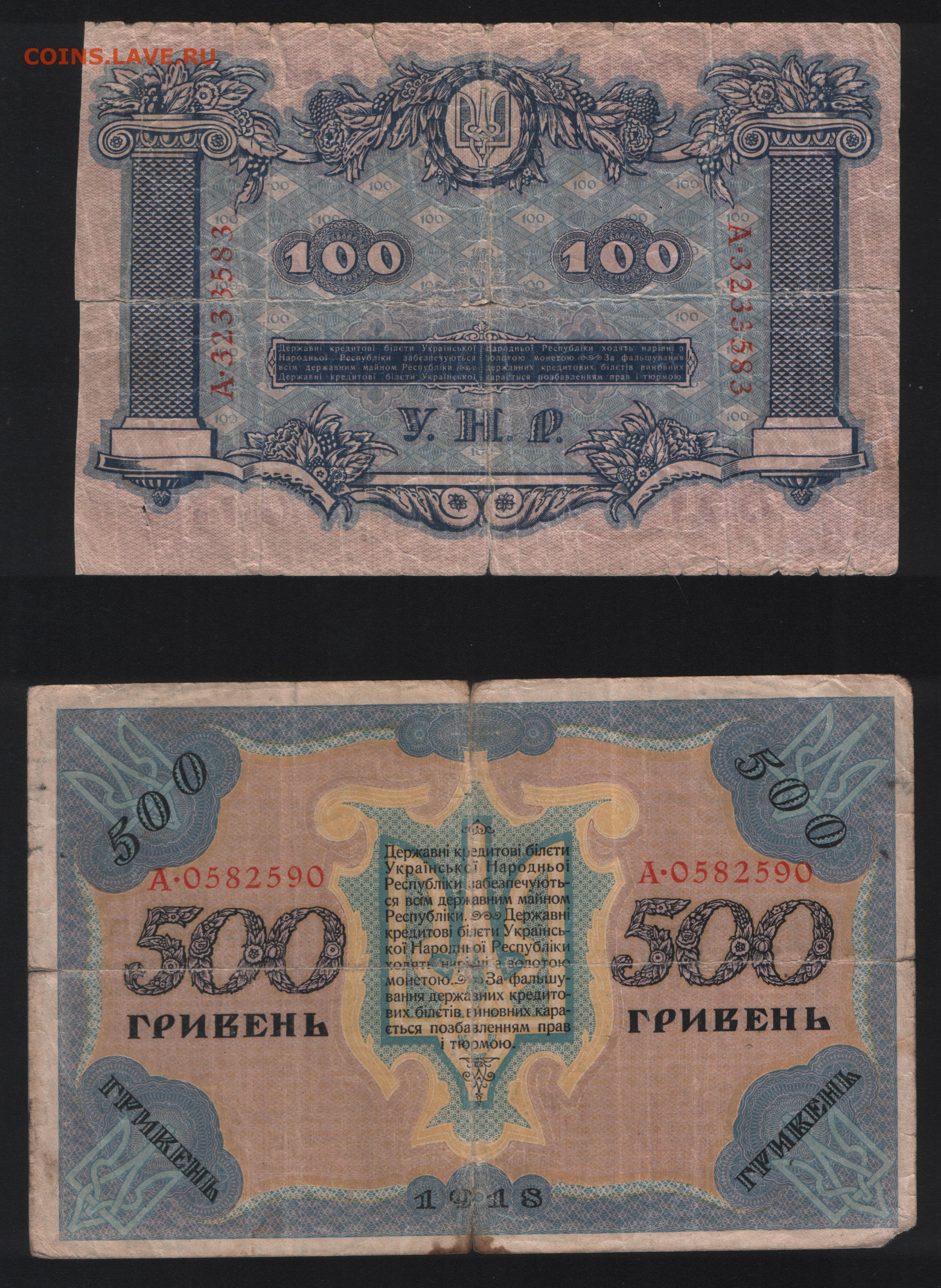 100 и 500 гривен УНР . Среднее состояние