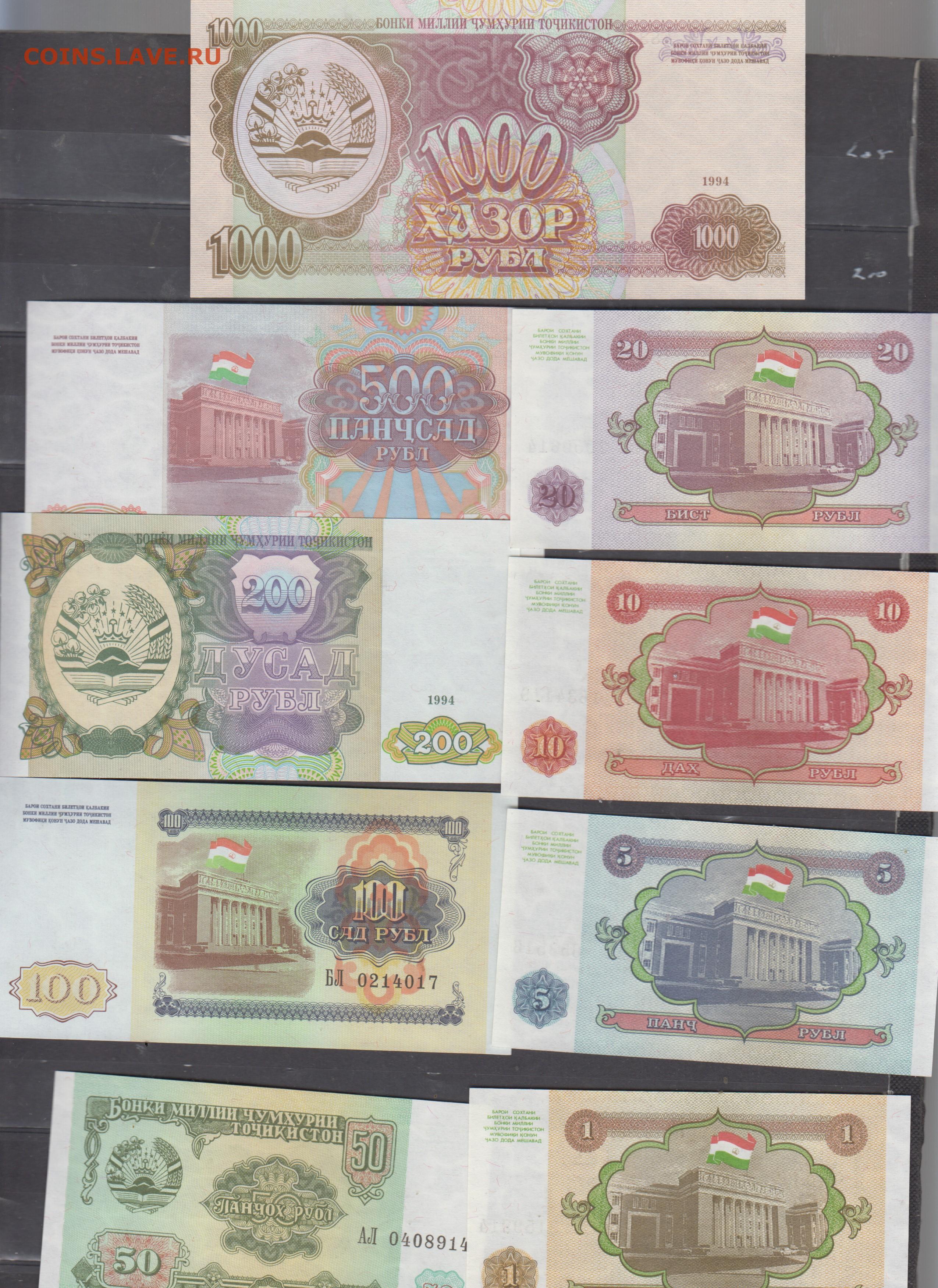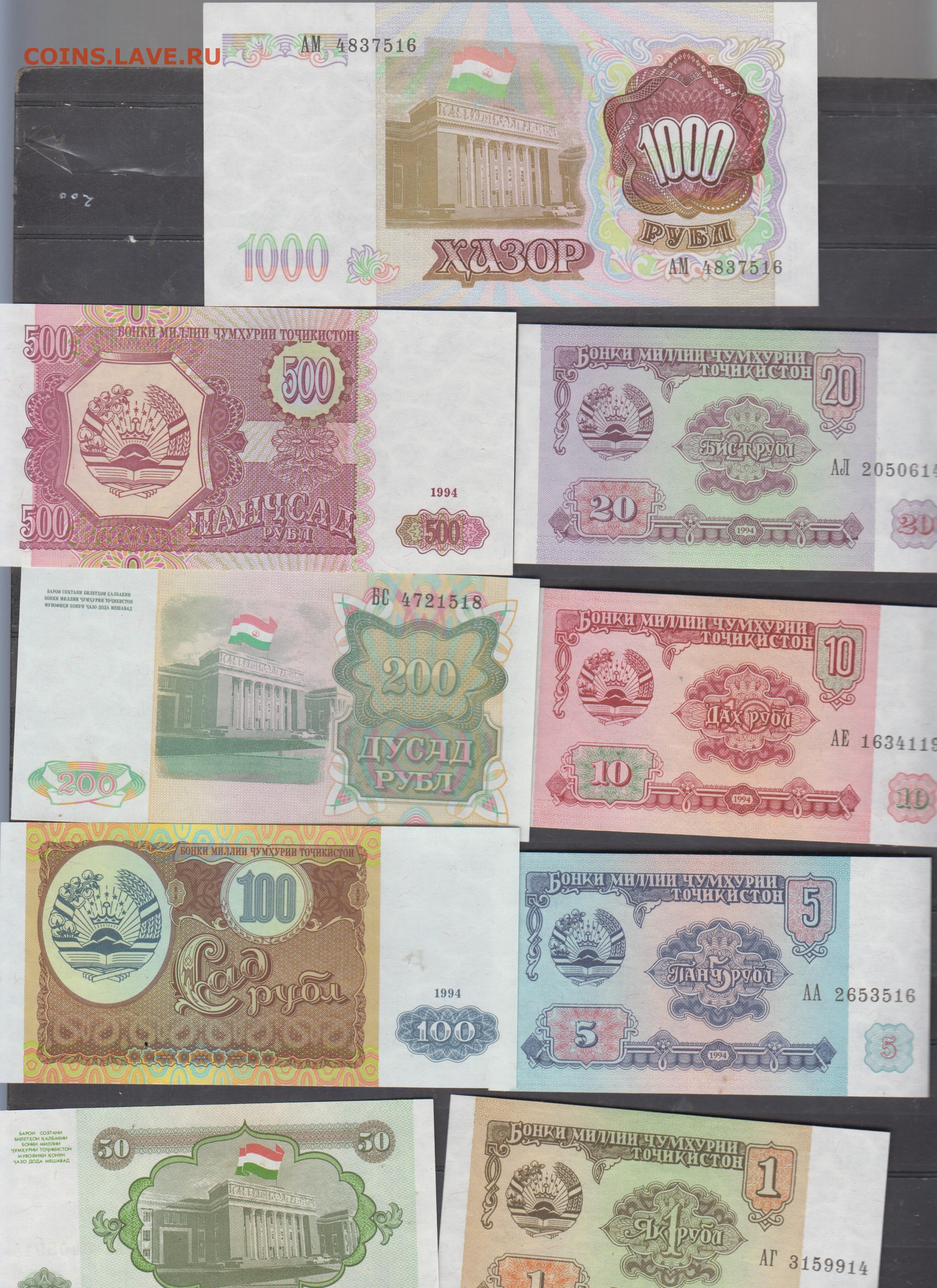 Таджикистан 1994 9 бонн 1-1000р пресс до 30 10