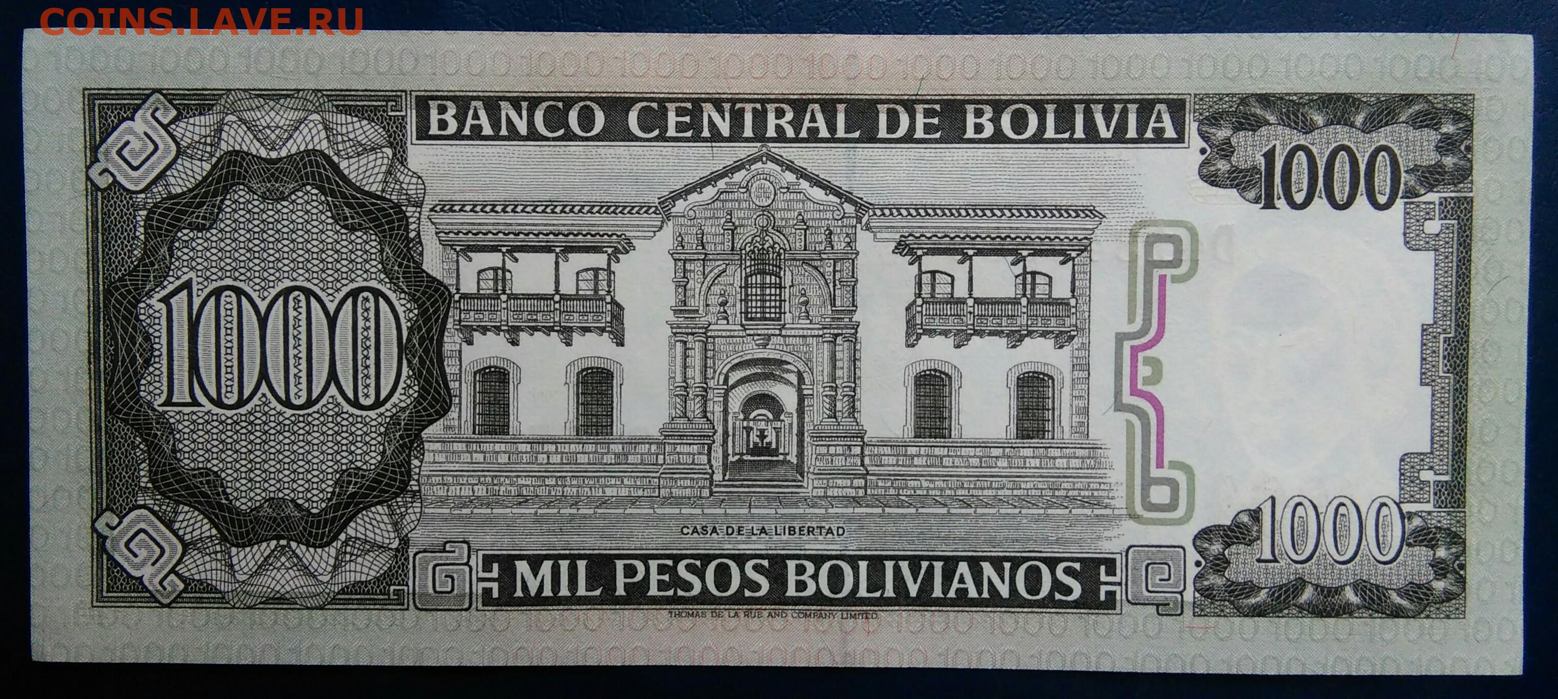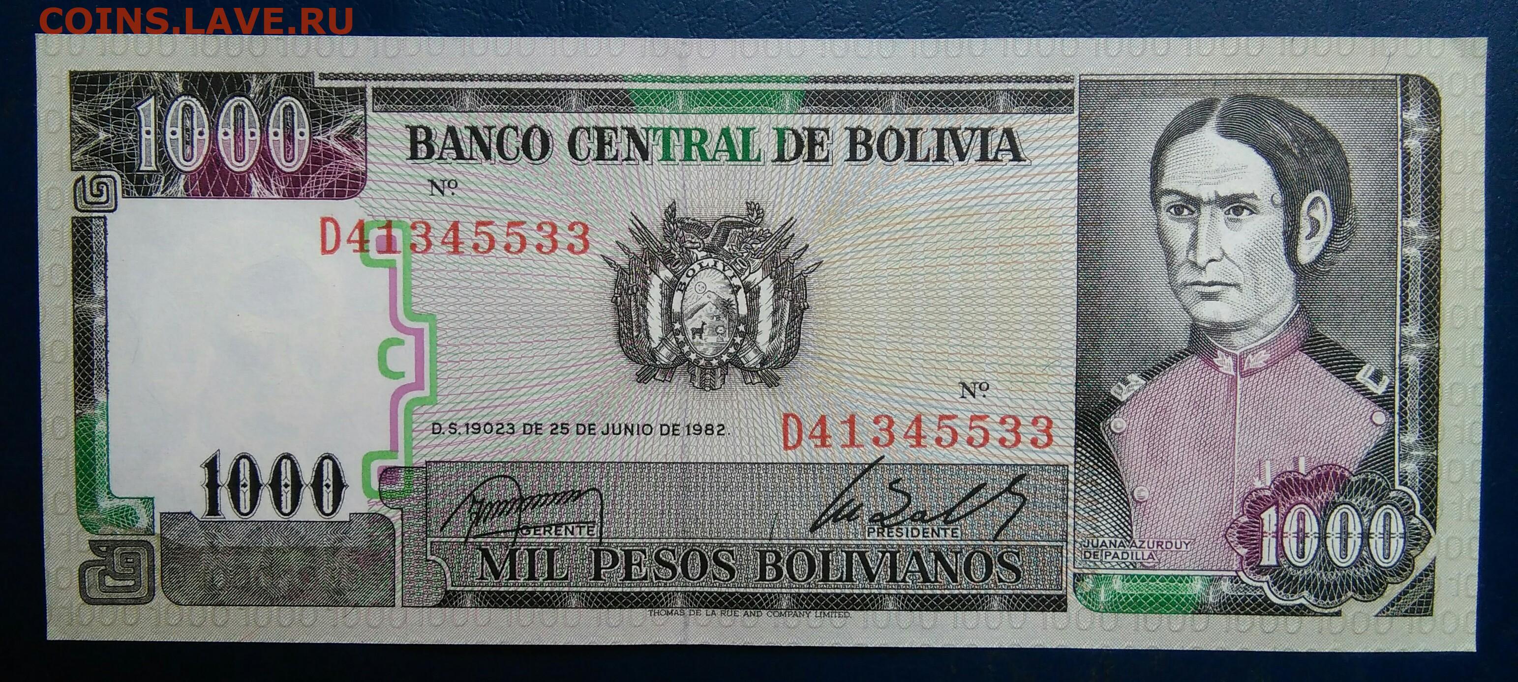 Боливия 1000 боливиано 1982 года до 10.11.2025