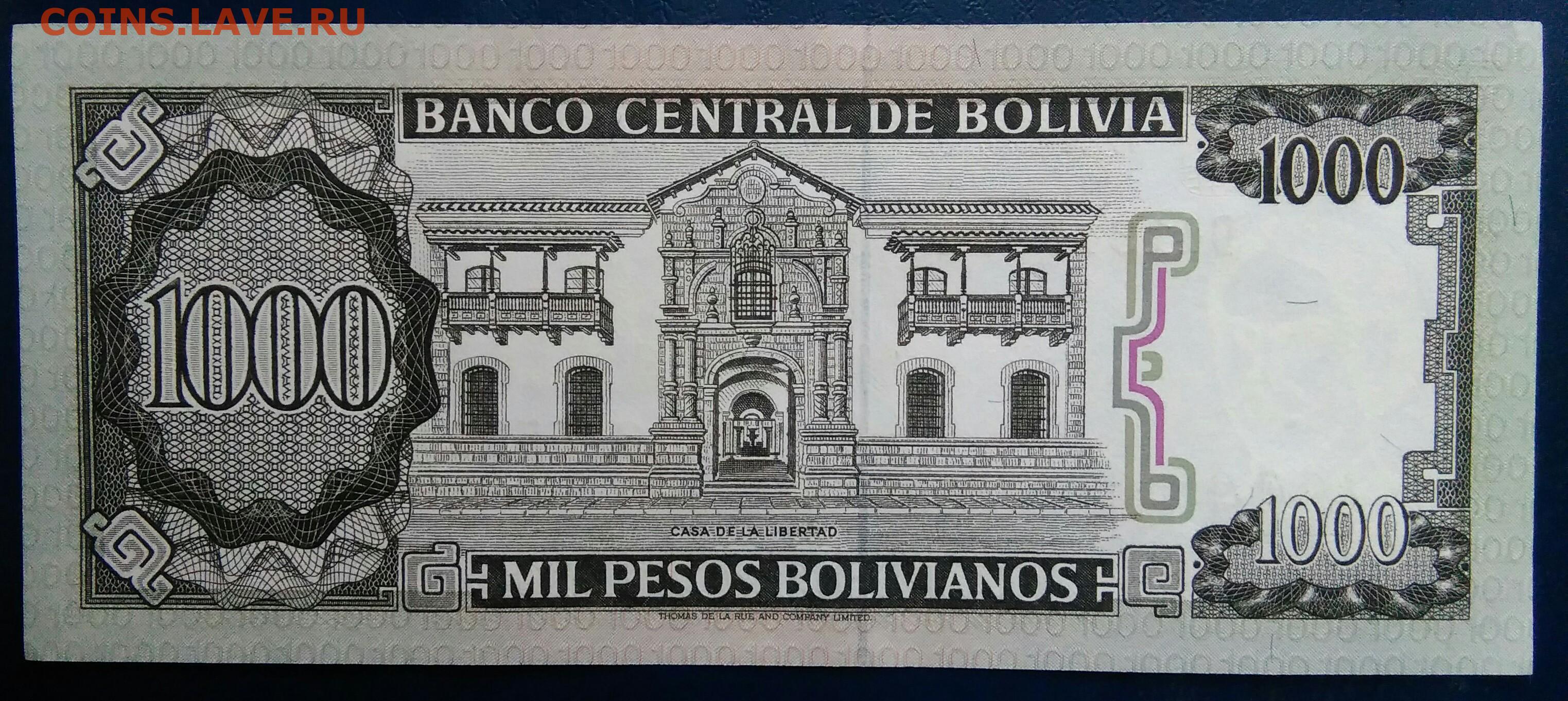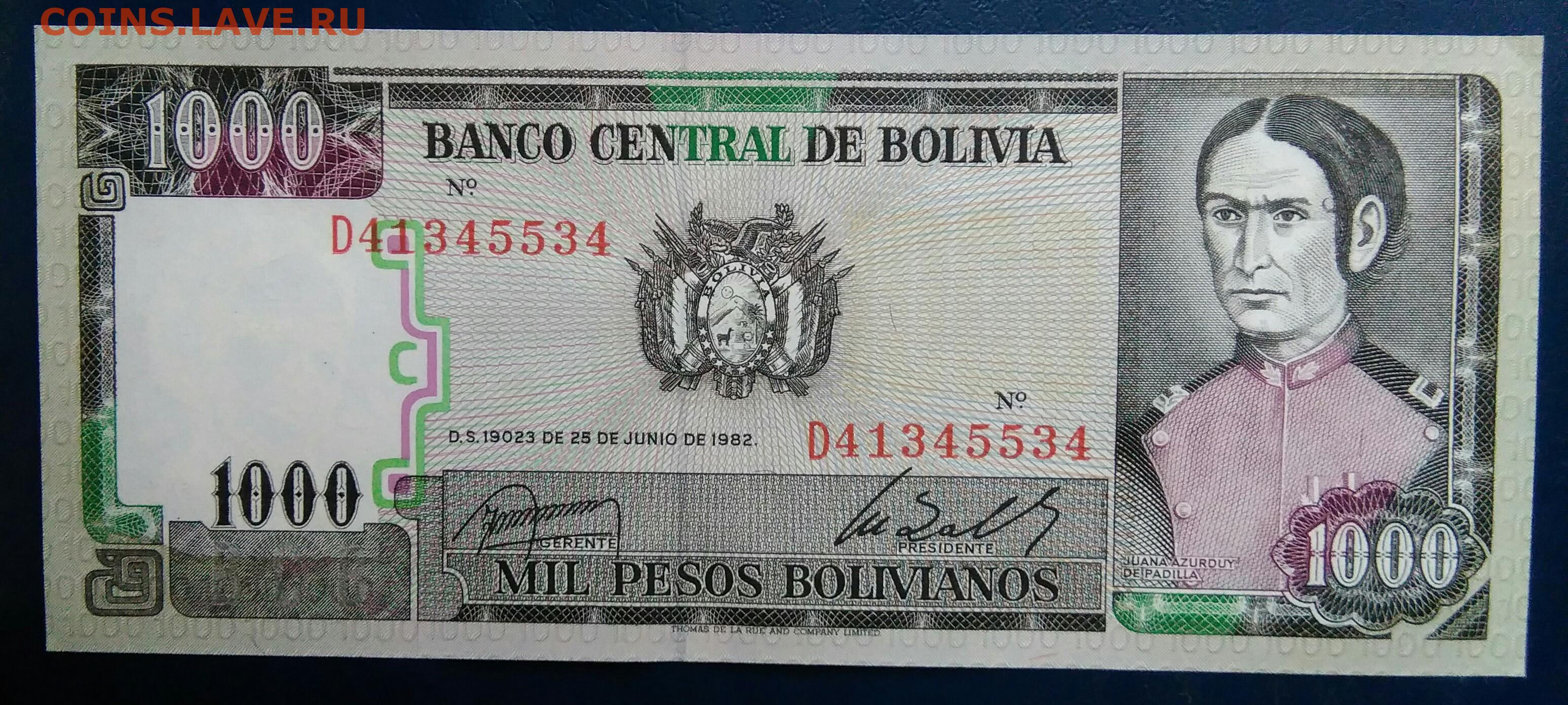 Боливия 1000 боливиано 1982 года до 01.12.2025
