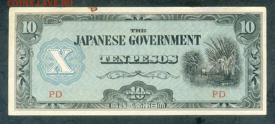 Филиппины 10 песо 1942 PD японская оккупация до 5.12.