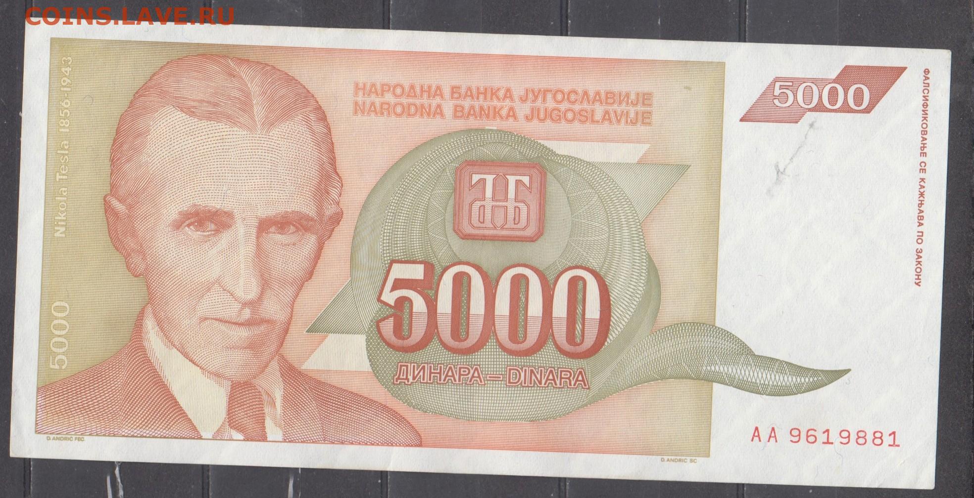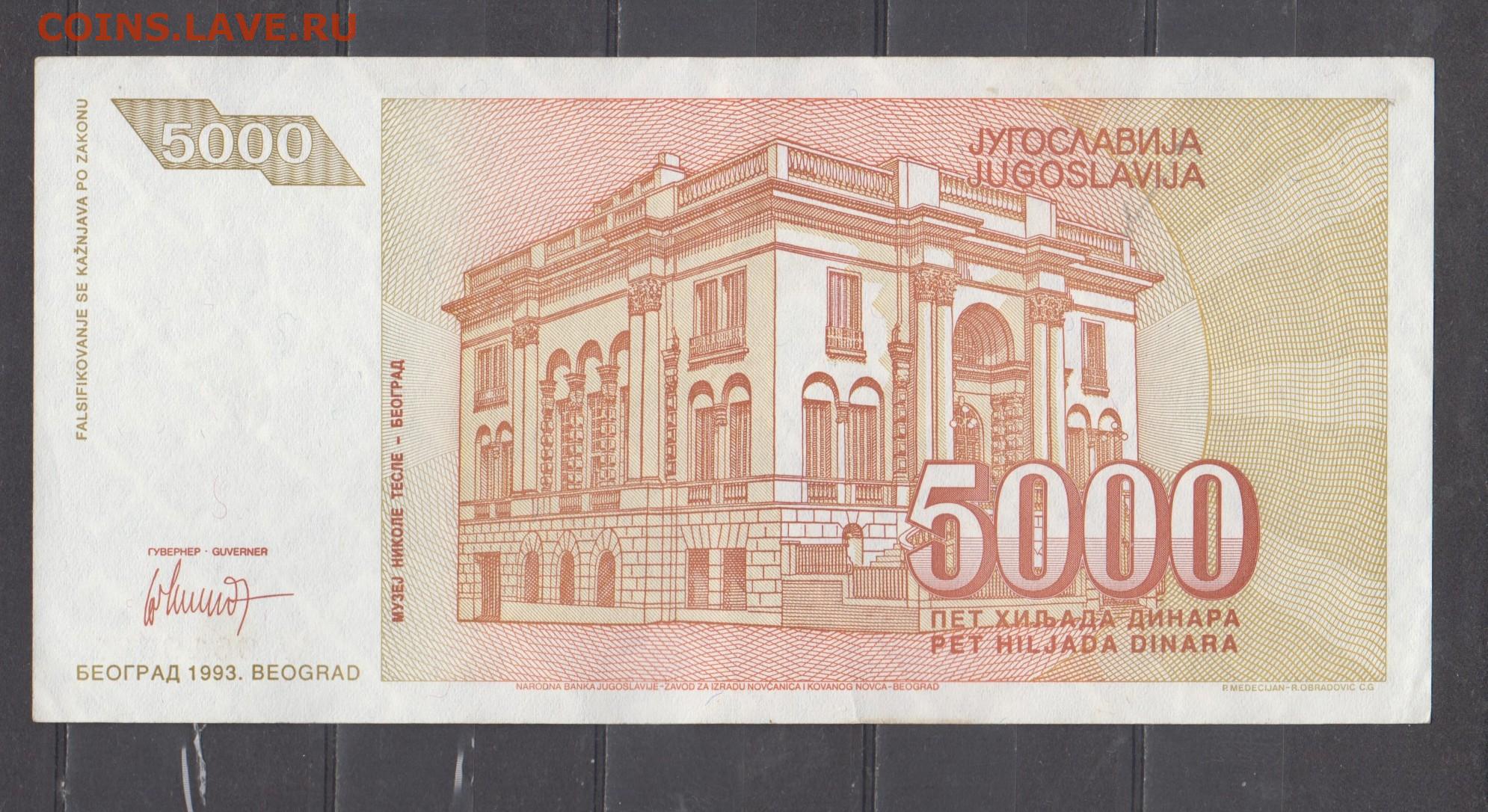 Югославия 1993 5000 динаров до 19 01