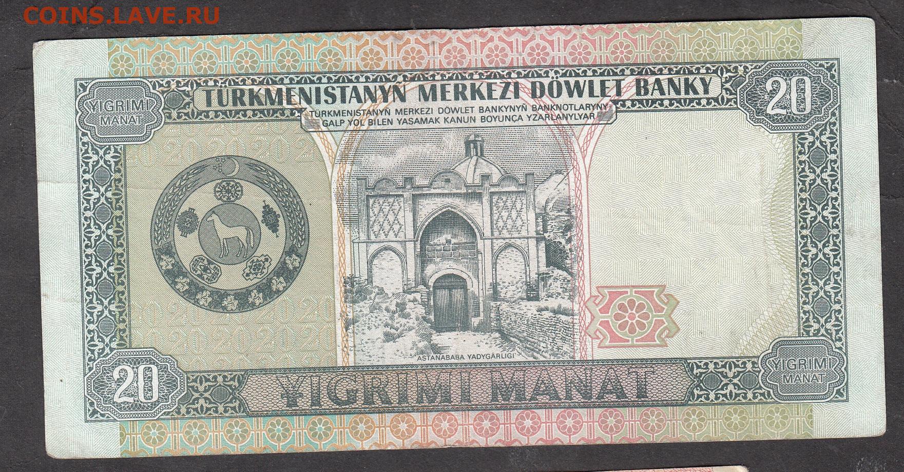 Туркмения 1993 20 манат до 19 01