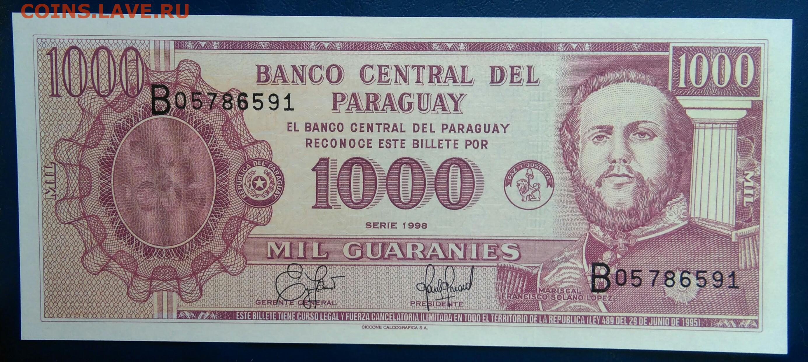 Парагвай 1000 гуарани 1998 года до 19.01.2026