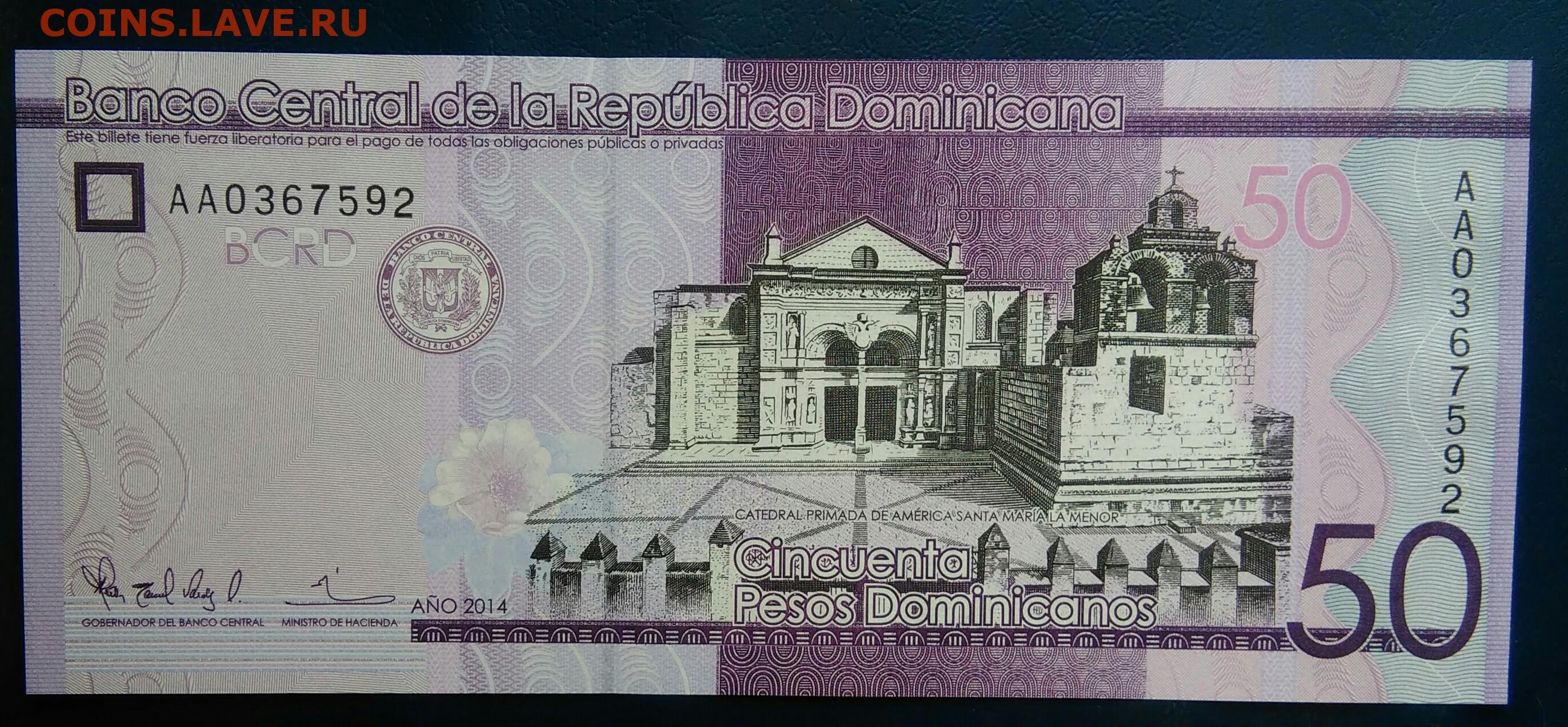 Доминикана 50 песо 2014 года до 19.01.2026