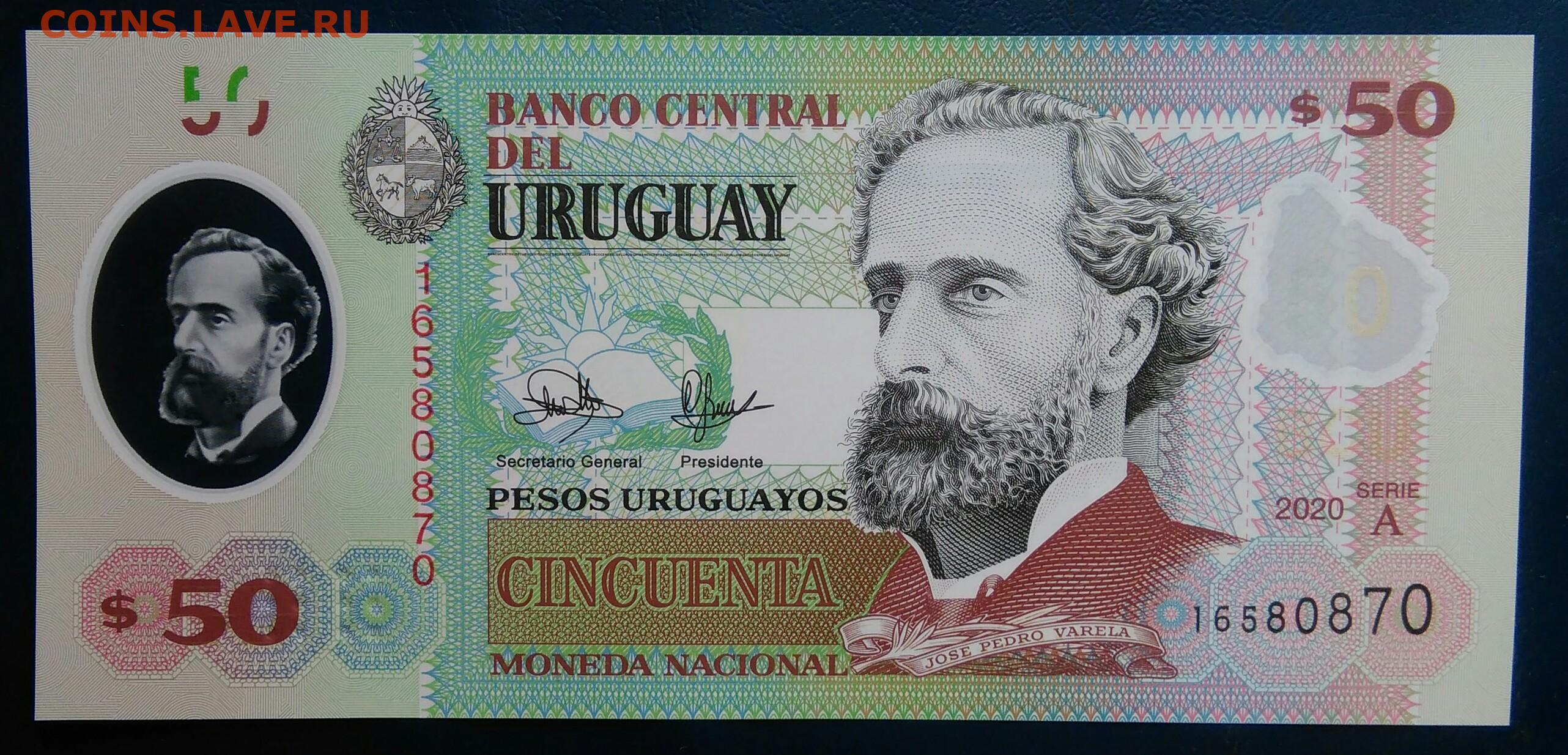 Уругвай 50 песо 2020 года до 19.01.2026