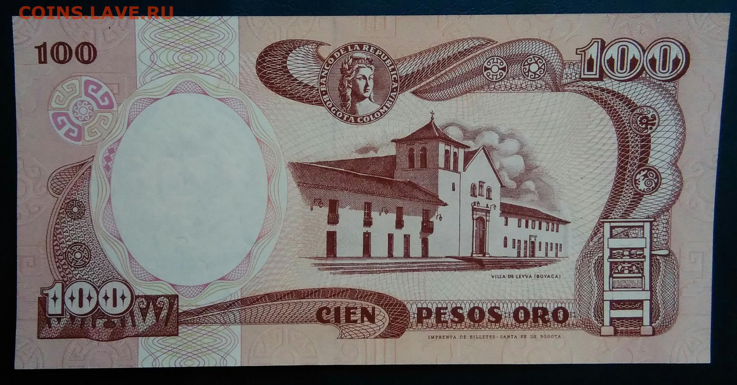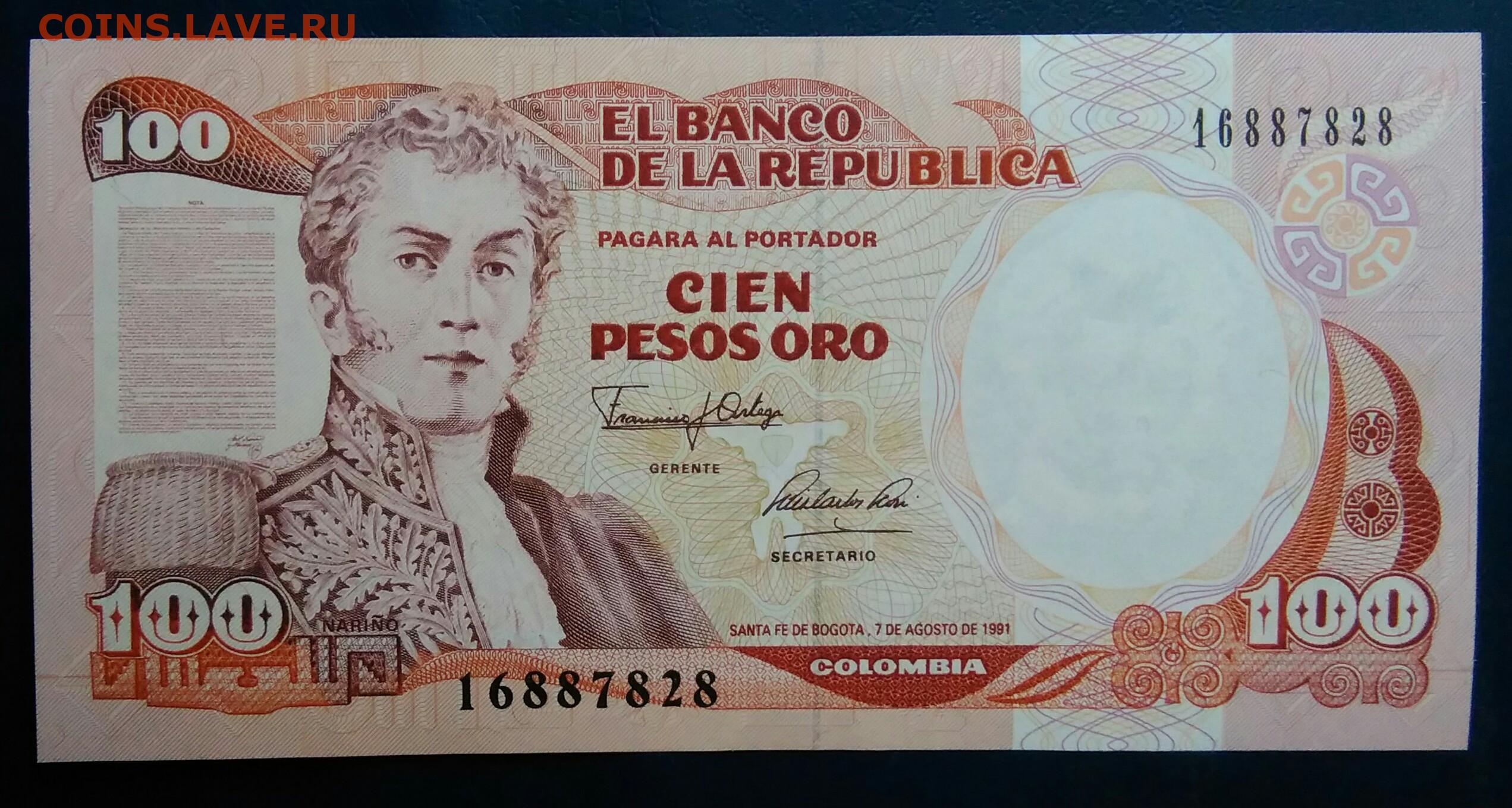 Колумбия 100 песо 1991 года до 19.01.2026