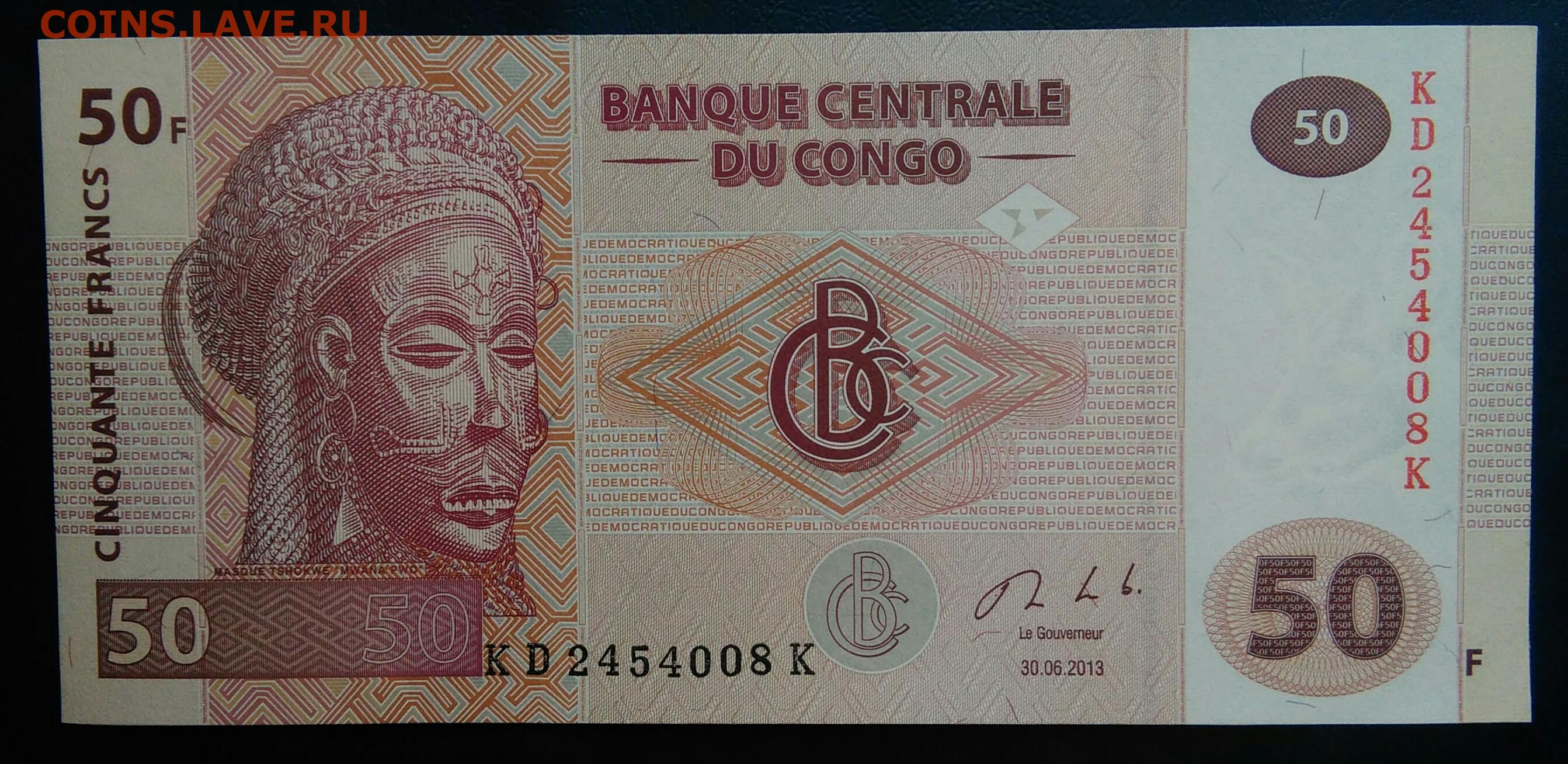 Конго 50 франков 2013 года до 19.01.2026