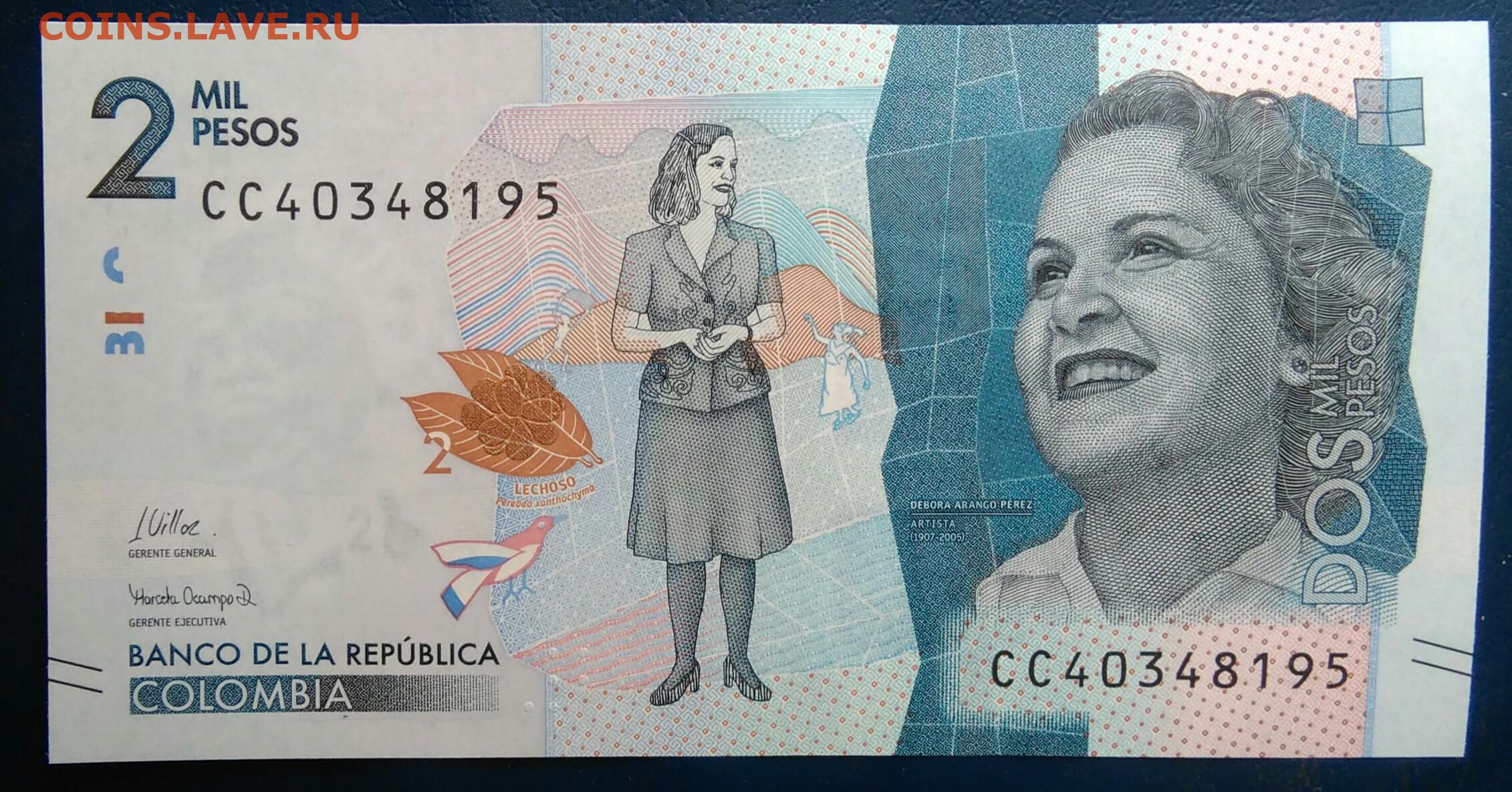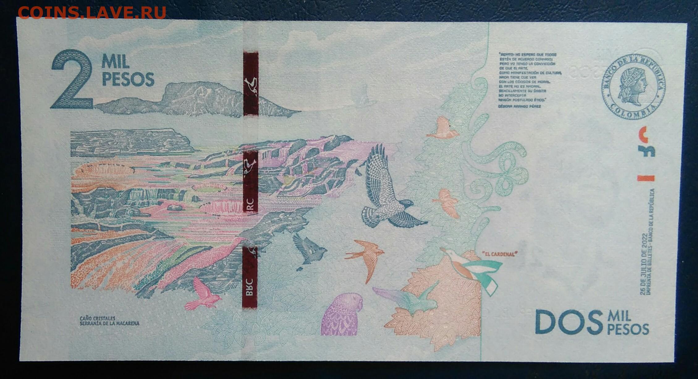 Колумбия 2000 песо 2022 года до 19.01.2026
