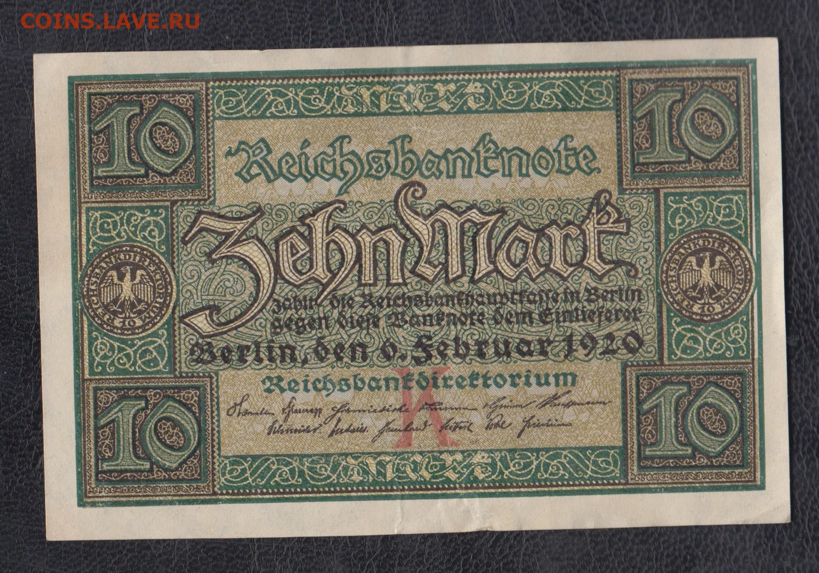 Германия 1920 10 марок до 02 02