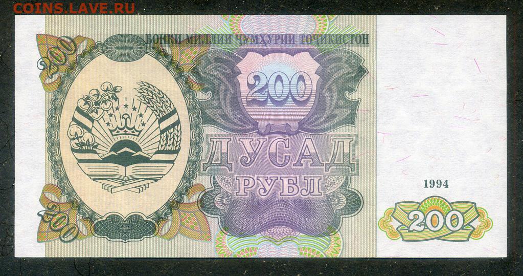 Таджикистан 200 рублей 1994 UNC до 25.02.