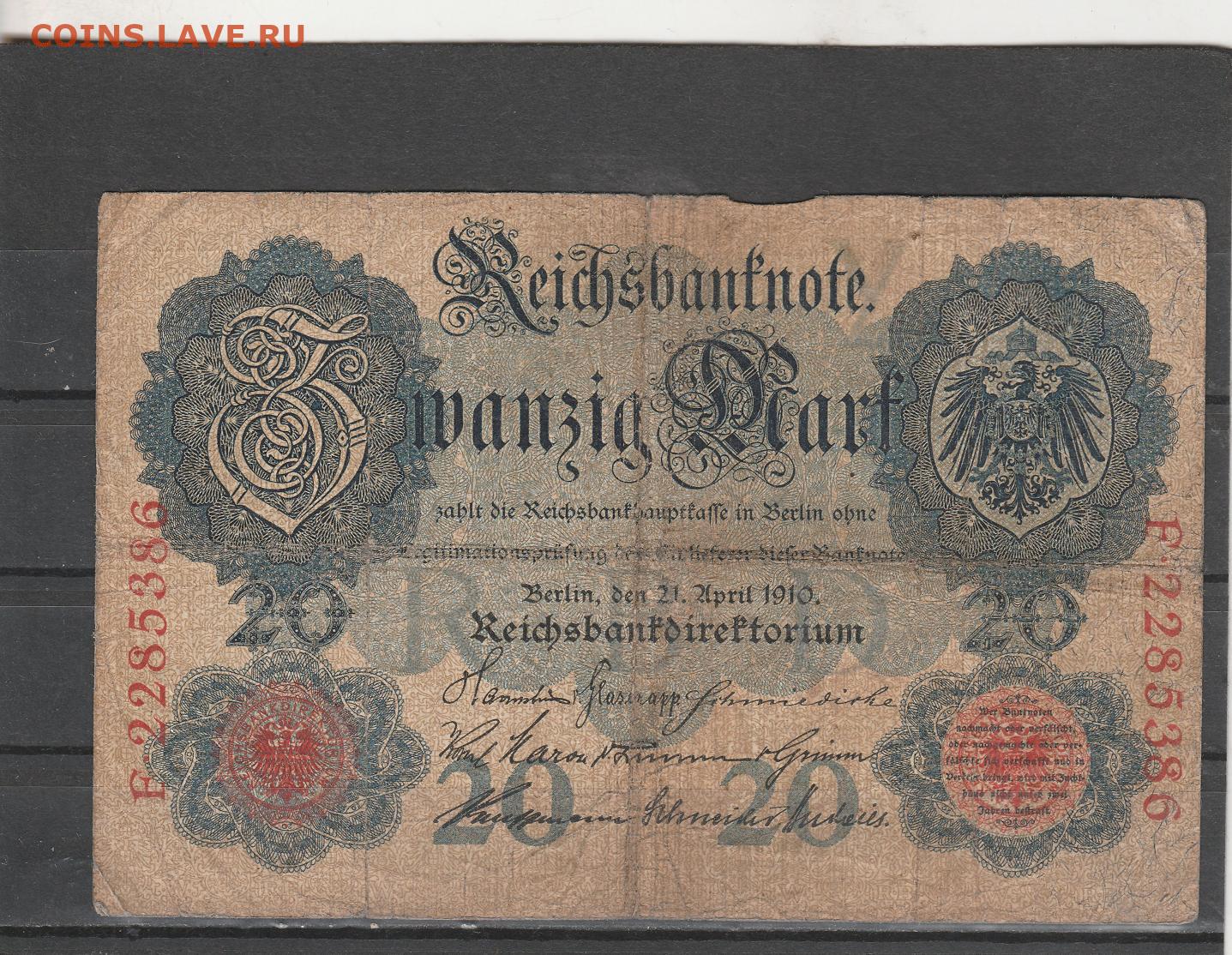 Германия 20 марок 1910 г. до 06.03. в 22.00