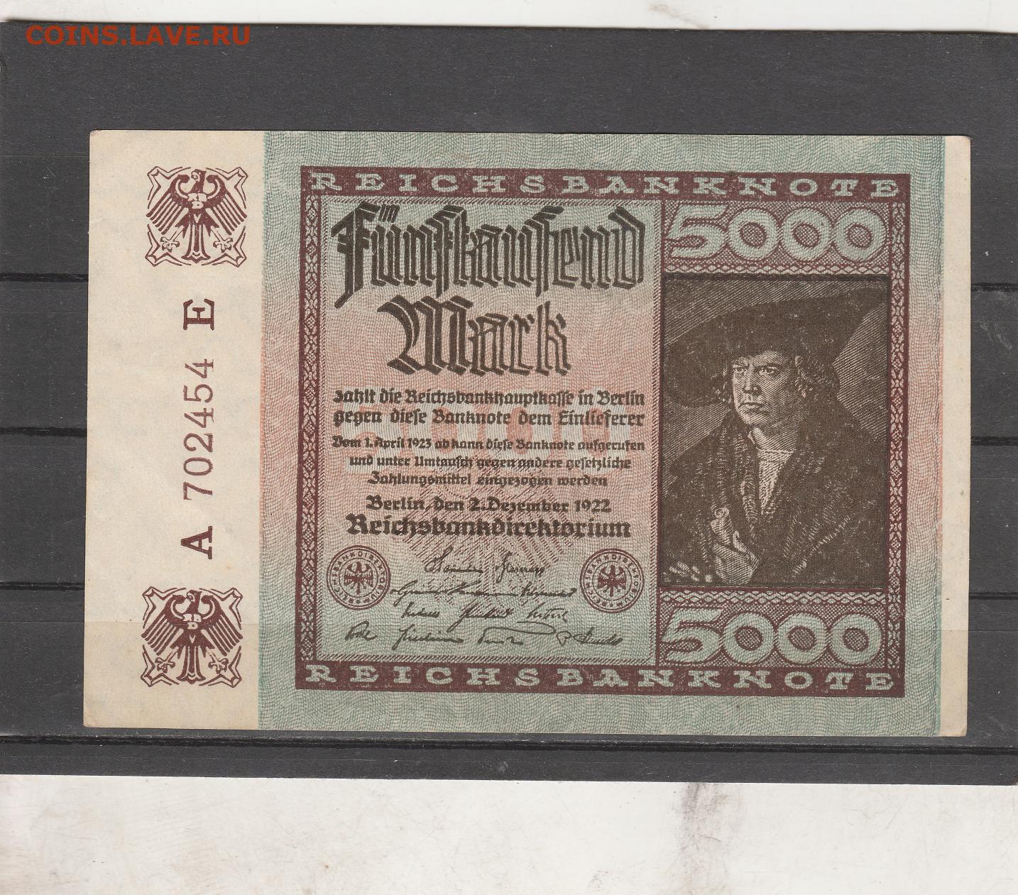 Германия 5000 марок 1920 г. до 06.03. в 22.00
