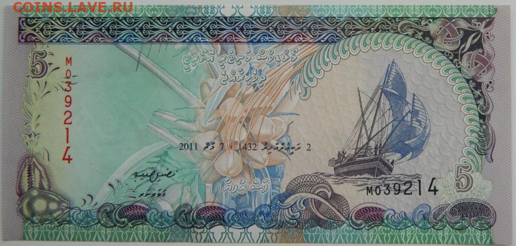 Мальдивские острова 5 руфий 2011 г. С рубля! до 16.03.26